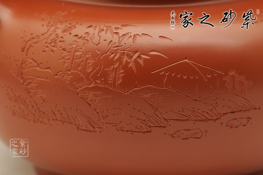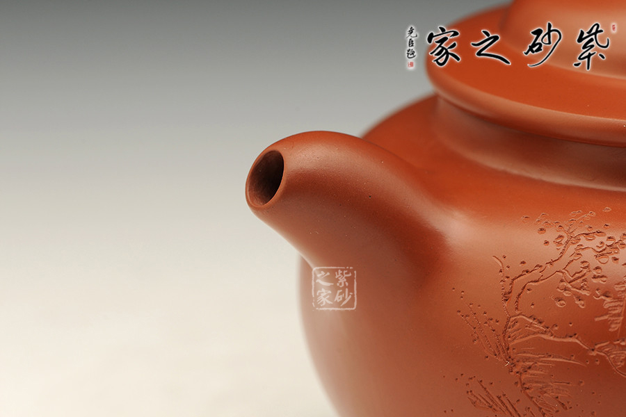 特點:質(zhì)感綿密、緊實細緻,持之扎實沉重、紅潤豔麗,泥中極品,無以倫比;泥胚含少許原礦顆粒,沖淋熱水后色變極大,呈紅中帶紫,養(yǎng)壺易現(xiàn)“包漿”之美。