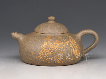 乳鼎壺其造型經(jīng)典,是曼聲十八式器型之一,壺式端莊秀美,造型圓潤(rùn)充實(shí),以曲線構(gòu)成主體形式,自壺鈕、蓋、身、底腳,沒有硬性的折線和角,顯現(xiàn)球形大小均衡適度的節(jié)奏感;一彎嘴、 圈把、把端下帶有飛扣,截蓋與口吻合,圓鈕似乳至腳線與主體造型緊密呼應(yīng),觸覺舒適,具有很強(qiáng)的形式美感,尤其是形態(tài)流線的掌握,優(yōu)柔曲折如小泉流水,令人大呼叫絕。青灰泥的溫暖柔和色澤,又讓此壺顯得非常清雅自然。