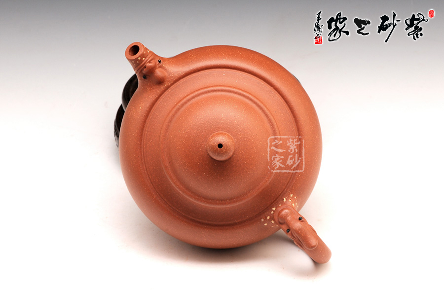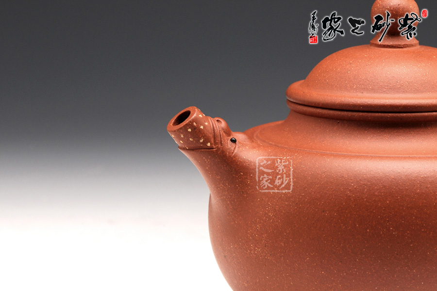 泥性:原礦因含緞泥、紅泥、紫泥等諸多共生礦,陶之后,于深沉之“橙紅色”底上,滿佈五彩斑斕的粗細、深淺之紅、黃星斑點。