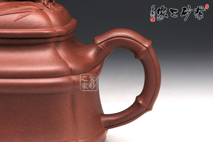 此款竹鼎壺做工嚴(yán)謹(jǐn),達(dá)到了無比精密的程度.。在壺把、壺嘴和壺鈕處作者都運(yùn)用到了竹節(jié)裝飾手法,由于做工精細(xì),不僅壺體銜接處恰到好處,而且竹節(jié)挺拔有力,形神逼真;尤其是壺蓋上裝飾的竹葉,刻跡清晰,彷佛青翠欲滴。整個(gè)壺體沒有雕刻任何繁雜圖案以及字跡,然而卻是一片韻味盎然,生趣動(dòng)人的景象。厚重中蘊(yùn)含著智慧,可謂大巧若拙的典范。精選原礦底槽清泥料制成,更見醇厚古穆,氣質(zhì)非凡。