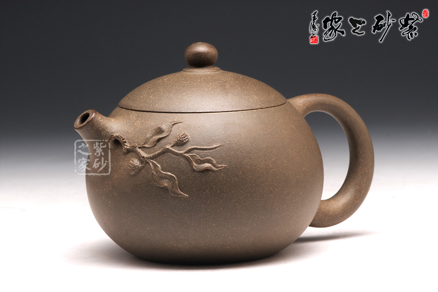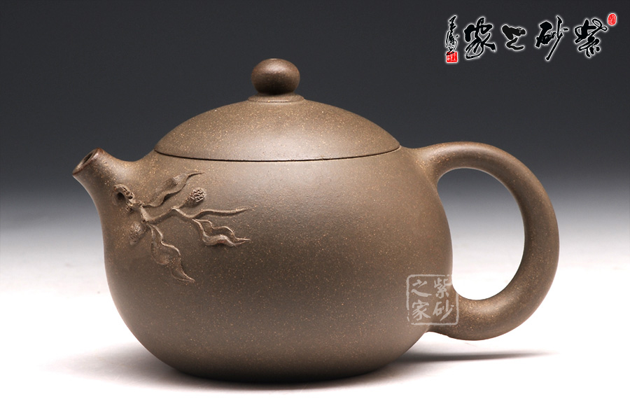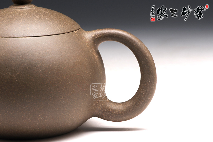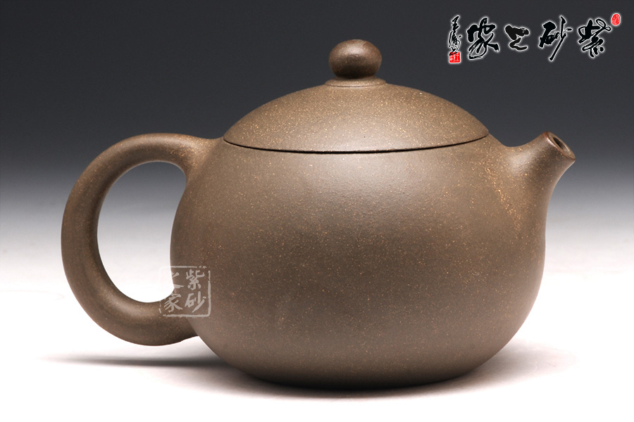 西施壺為經(jīng)典造型,壺嘴翹起若撅著的櫻桃小口,仿佛撒嬌的小姑娘;壺身飽滿圓潤,看起來像是輕泛紅暈的粉潤臉頰;倒把上細(xì)下粗,則似身后那烏黑發(fā)亮的發(fā)髻。小西施壺就像是一個西子湖畔的江南美女,其嬌羞之狀讓人我見尤憐。泡茶時,壺的小嘴流出的茶水柔弱無力,仿佛是弱柳扶風(fēng)般的顰眉西施,令人愛不釋手。