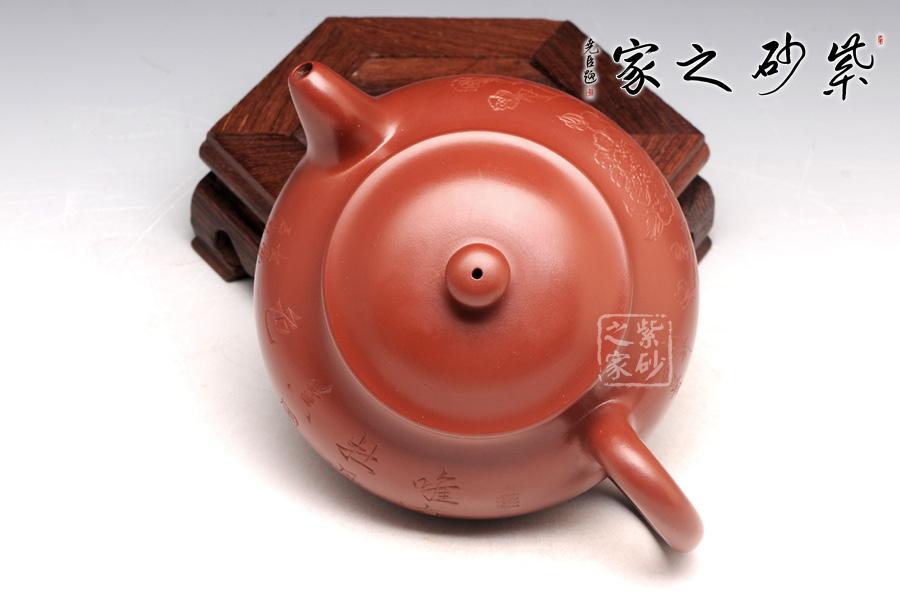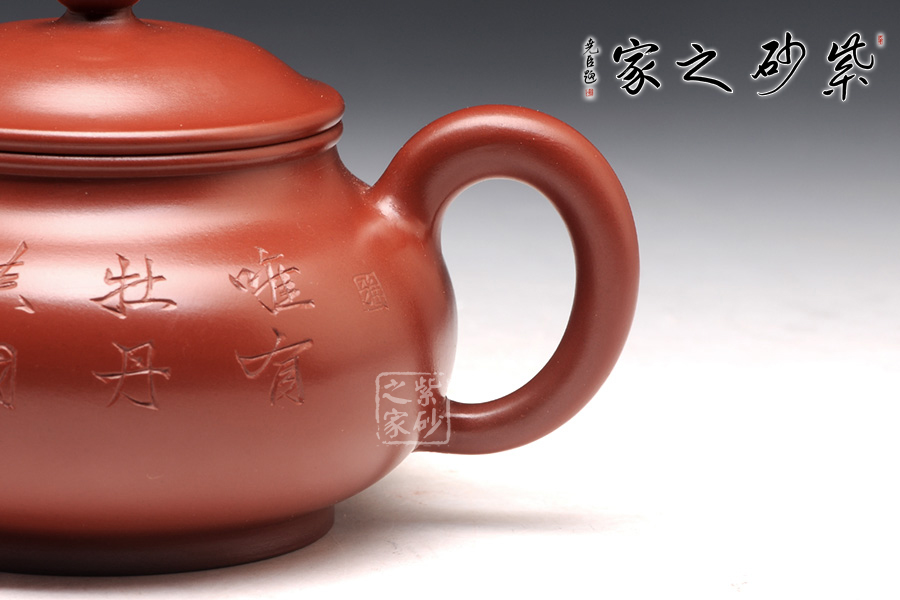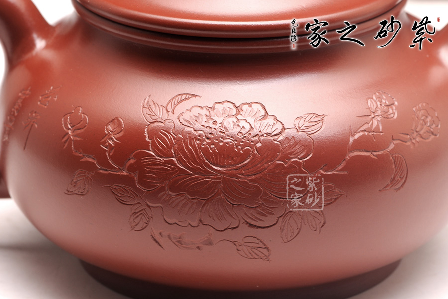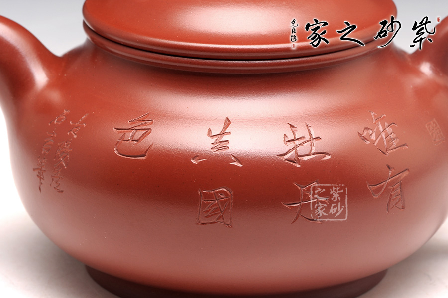 刻繪詩(shī)句“唯有牡丹真國(guó)色”正好照應(yīng)背面的牡丹花,大紅袍泥料配以牡丹甚是富貴。