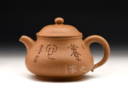 此壺精選大紅袍制成,紅艷奪目,氣質(zhì)高雅,令觀者滿受瑞氣臨身,鴻運(yùn)當(dāng)頭之意。潘壺,傳統(tǒng)經(jīng)典器型,原本為南方女兒陪嫁之物,廣為流傳;作品清雅動(dòng)人,有含情脈脈之態(tài);整款壺呈現(xiàn)出大氣、簡(jiǎn)練、明快的藝術(shù)風(fēng)格,甚是耐人尋味。此壺器形典雅,壺腹飽滿,壺身略扁,壺底與壺口口徑一致,形成上下應(yīng)和之勢(shì),一彎嘴斜出,耳形壺把隨身勢(shì)而動(dòng),顯得柔韌有余;雙子母線平蓋包攬壺口,氣密性極佳,飽滿的珠鈕置于壺頂,協(xié)調(diào)有致,整器更顯雅致。