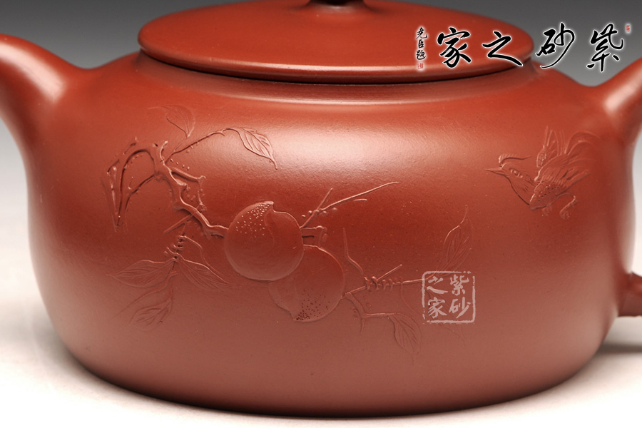 特點(diǎn):質(zhì)感綿密、緊實(shí)細(xì)緻,持之扎實(shí)沉重、紅潤(rùn)豔麗,泥中極品,無(wú)以倫比;泥胚含少許原礦顆粒,沖淋熱水后色變極大,呈紅中帶紫,養(yǎng)壺易現(xiàn)“包漿”之美。