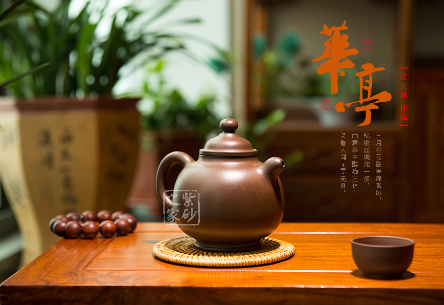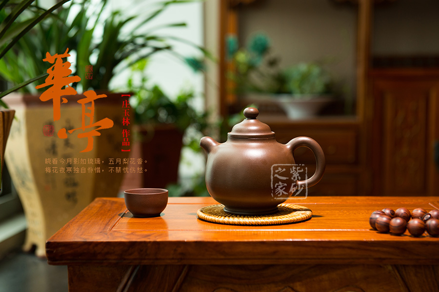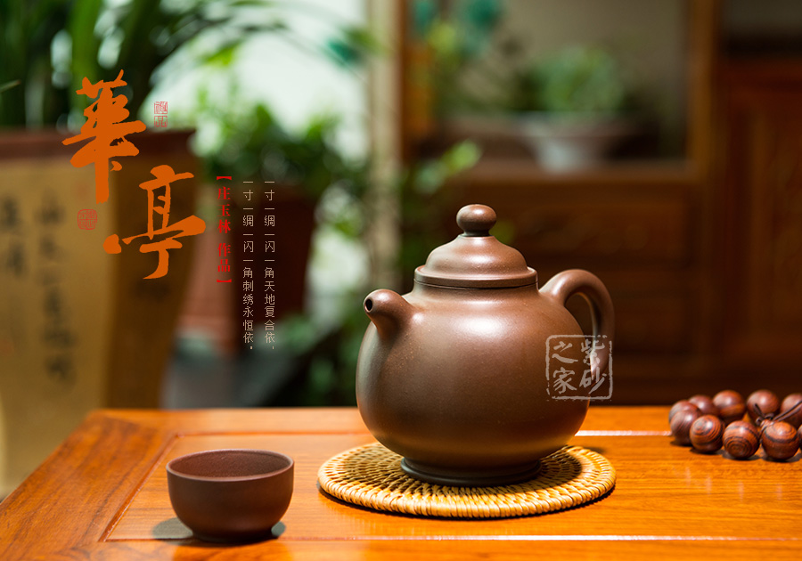 華亭壺美觀獨特,承襲傳統(tǒng)器型,用料優(yōu)質(zhì),壺身細膩秀雅,一身素器,用簡潔的形態(tài)來表達此壺自身的生命力,壺嘴、壺把與壺蓋和諧統(tǒng)一, 使得壺體各部分有優(yōu)美比例,表現(xiàn)出精湛的制作技巧和優(yōu)良的實用功能;加底設計使得此壺更加有視覺效果,立體感更強,此壺素雅簡潔卻最是能表現(xiàn)出藝人的基本功力和文學素養(yǎng)!