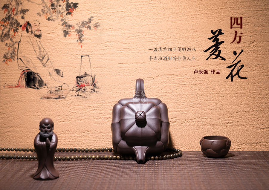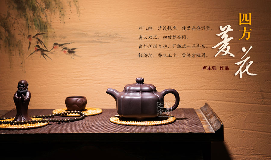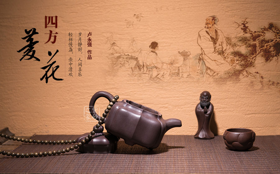 盧永強(qiáng),工藝美術(shù)師,1970年生于江蘇宜興紫砂世家,87年涉藝紫砂,先入中央工藝美術(shù)學(xué)院專修陶瓷造型設(shè)計(jì),后得高級工藝美術(shù)師張慶臣(陶瓷大師何道洪高徒)親授,悟于時(shí)間,靈妙入化,使作品打下了堅(jiān)實(shí)的傳統(tǒng)功底,得紫砂陶之精妙靈氣,所制作品動(dòng)靜有序,追求整體的和諧永雋。作品做工細(xì)膩、簡潔大氣,常選用“泥中君子“美譽(yù)的稀有紫茄泥制作,古拙典雅、沉穩(wěn)內(nèi)斂、不失氣勢,值得關(guān)注;其代表作品《紫玉金環(huán)》、《菊仿古》、《三友》等不愧是紫砂精品,全面精湛地展示了其制壺技藝和創(chuàng)作才華,后期潛力無限。