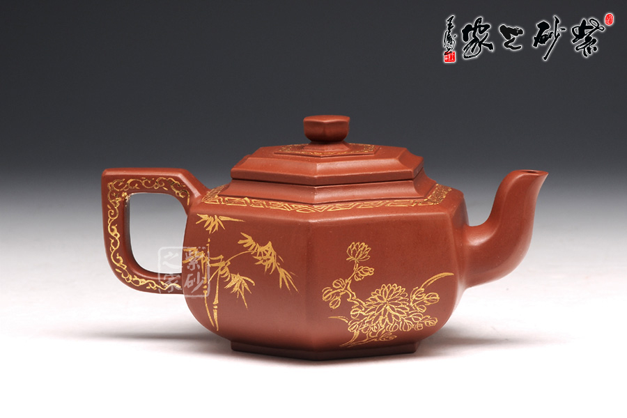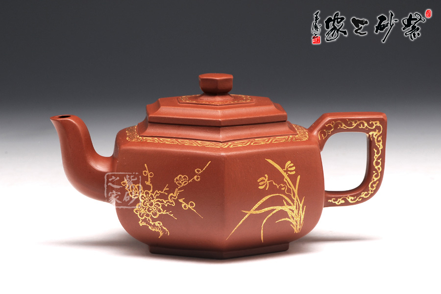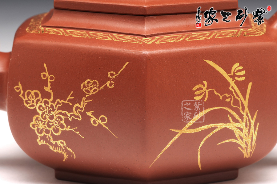 描金裝飾的四君子精美華麗,讓此壺增色許多。