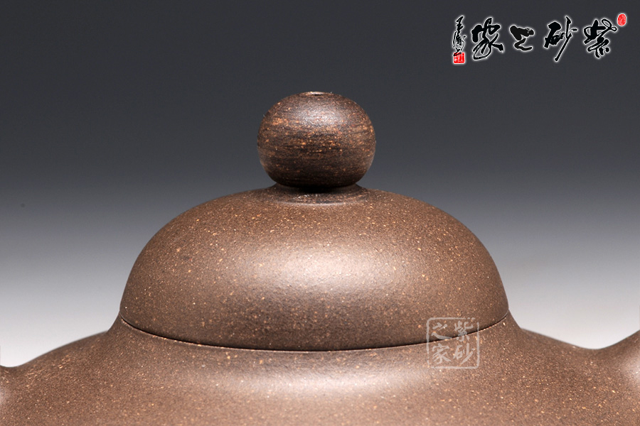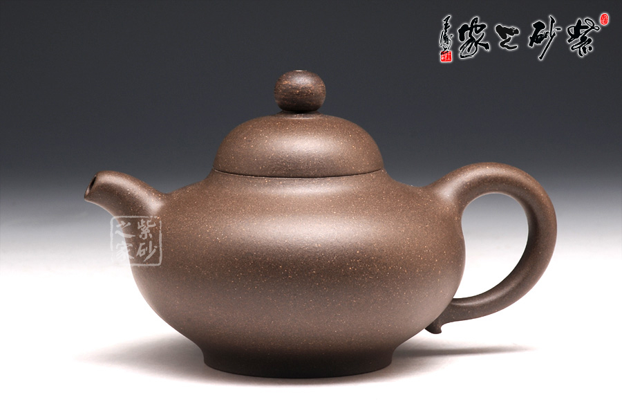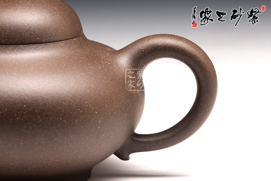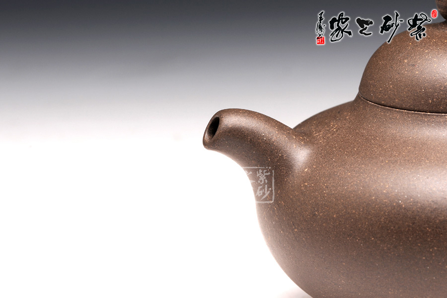 此壺精選原礦天青泥精制而成,呈深紫灰色調(diào),古樸雅致。壺身偏扁,壺蓋鼓起如帽,壺壺鈕如珠,一彎流壺嘴,柔和美觀,出水爽利。耳形端把,端握舒適稱手。品味此壺,那種流暢美妙的韻味沁人心脾,華麗的姿態(tài)尤其難忘。此壺,真是壺如其名,華麗新穎。