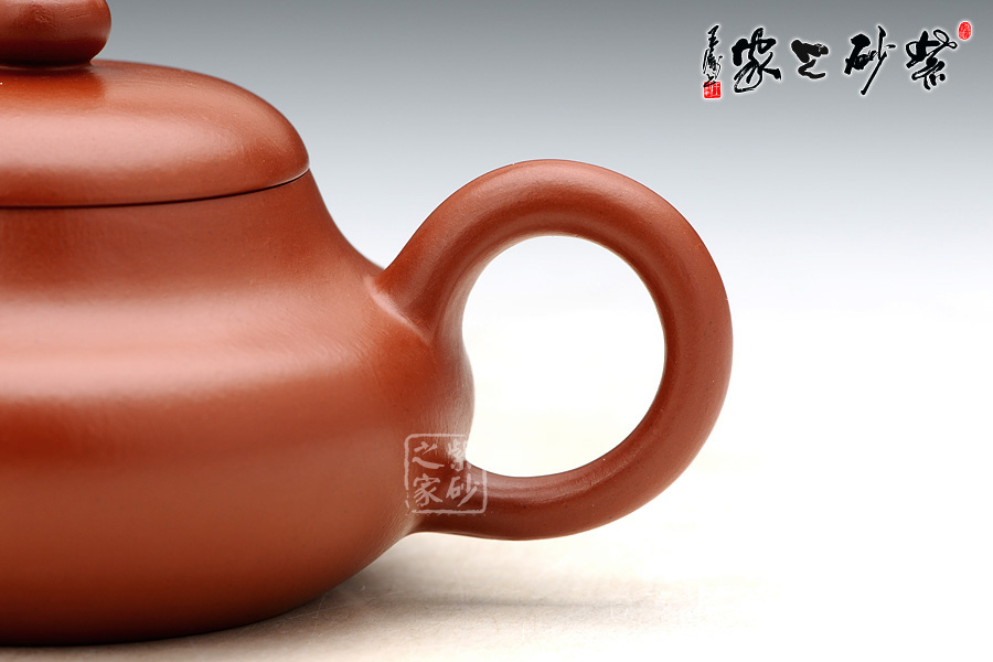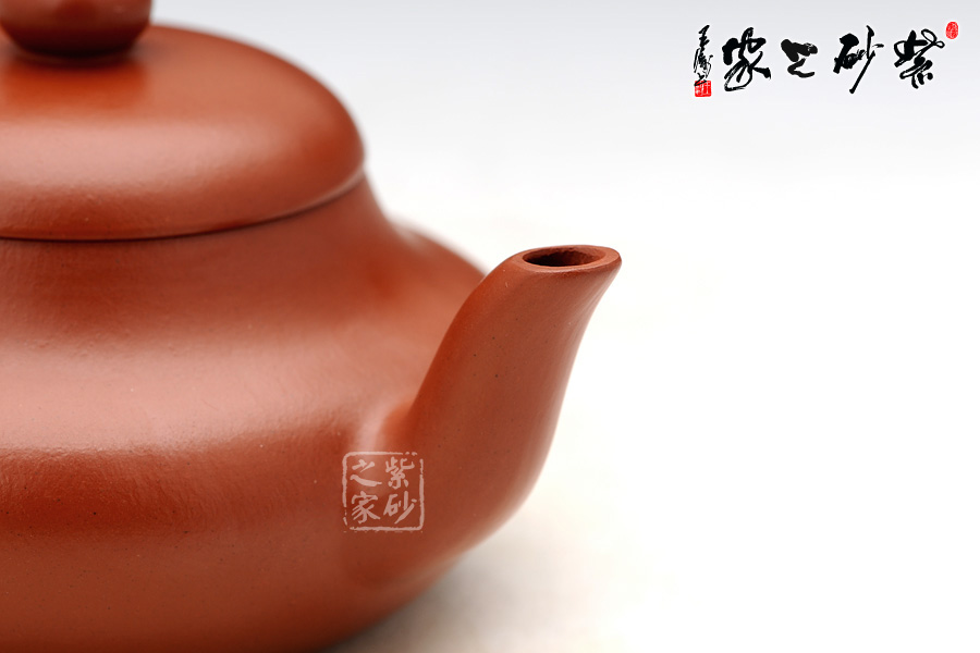 此壺為“首屆紫砂之家養(yǎng)壺大賽”朱泥組專用壺。朱泥色澤艷而不妖,壺出漿快,漂亮;朱泥的細(xì)膩人所周知,養(yǎng)用此壺,朱泥的細(xì)膩會(huì)逐漸明晰,包漿展示的光澤會(huì)隨著壺的角度不同而逐漸變化,恰似水光瀲滟、山色空濛。