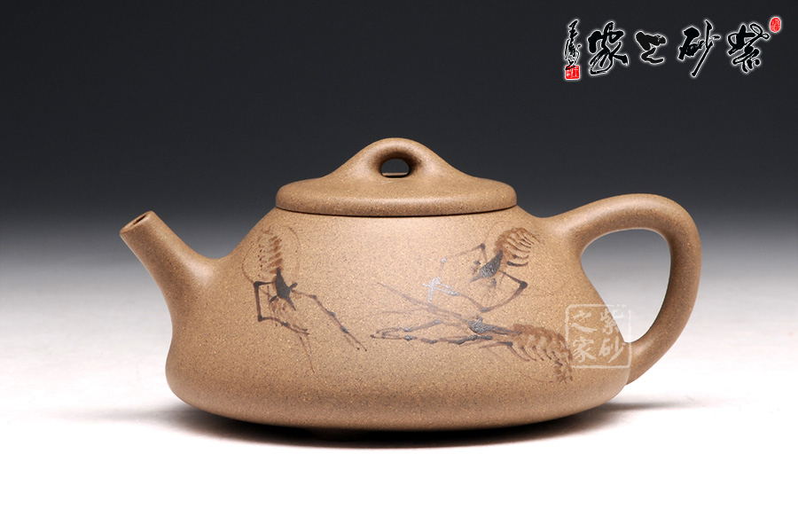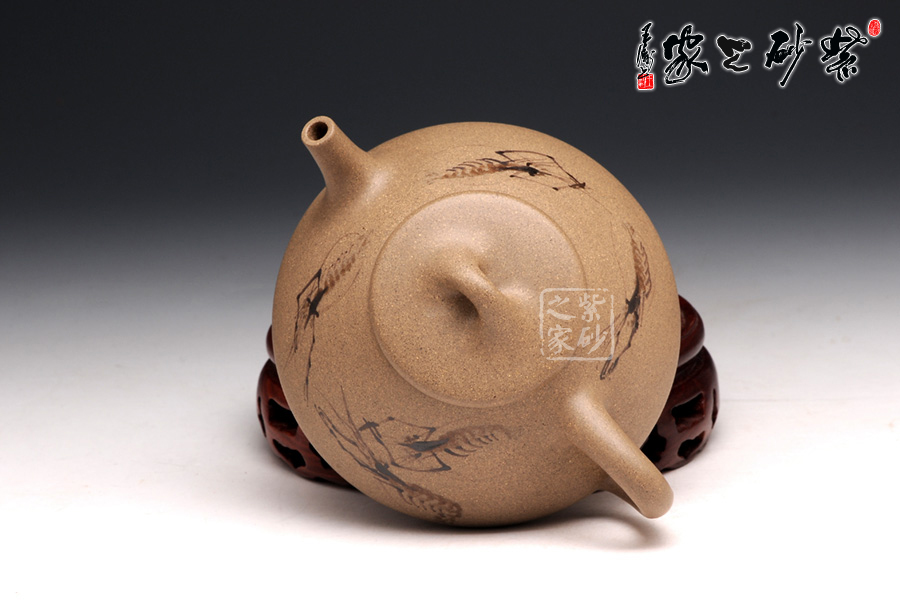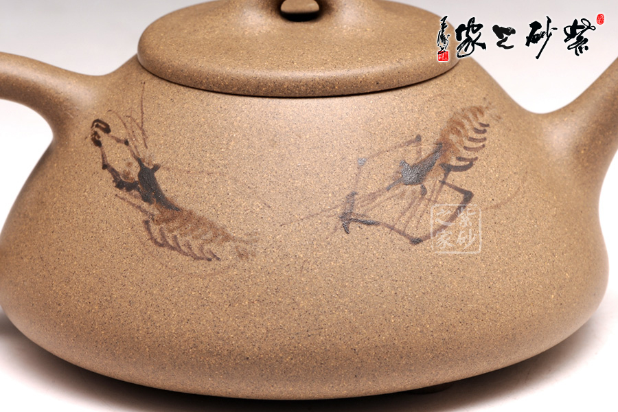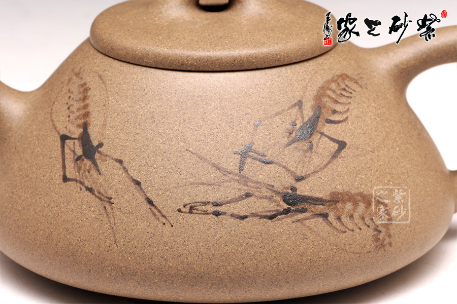 通體裝飾: 裝飾: 蝦 裝飾者:陶刻藝人 裝飾內(nèi)容: 小蝦戲水