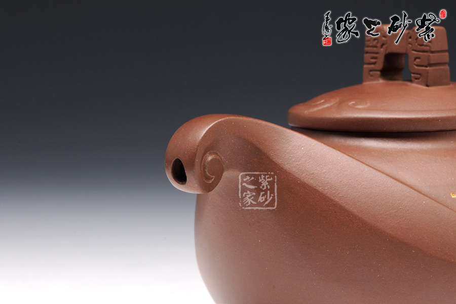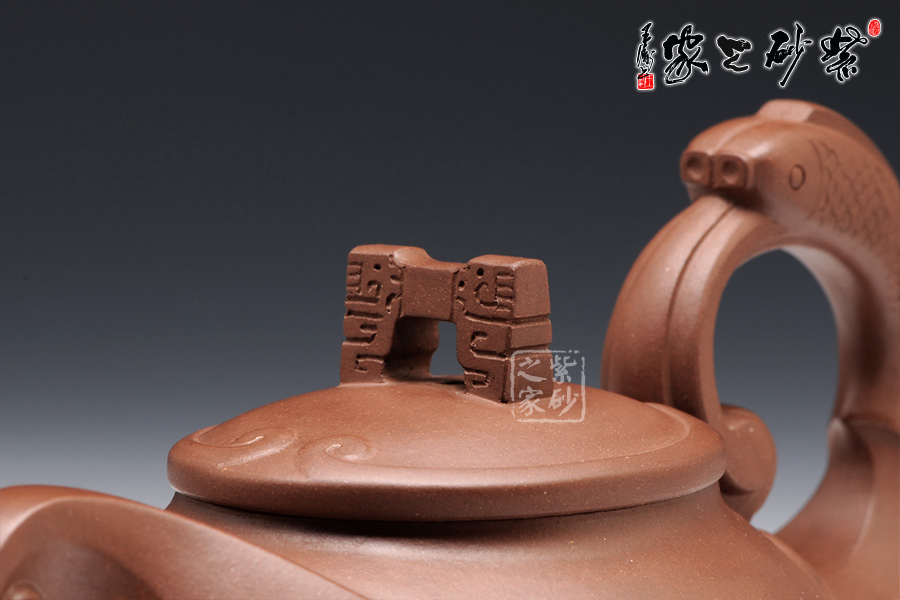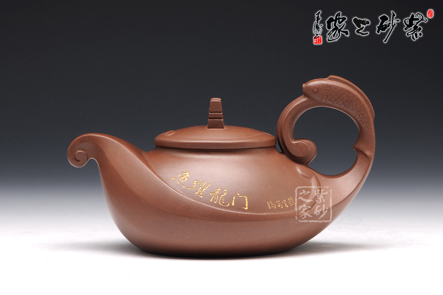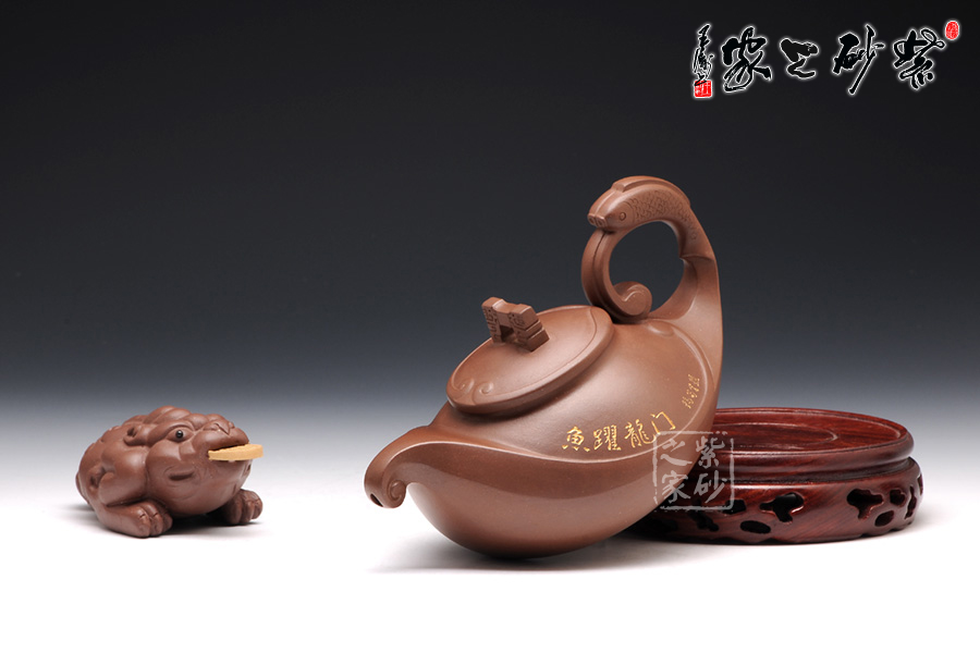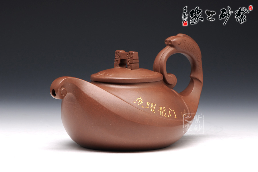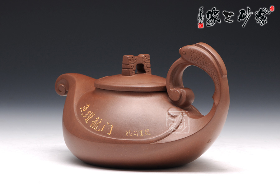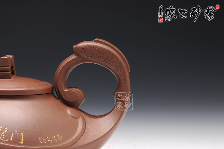 這款壺的造型別具一格,壺鈕為門(mén),壺蓋為云,壺體為浪,壺把為魚(yú),給人以白云碧波,魚(yú)躍龍門(mén)的視覺(jué)聯(lián)想。