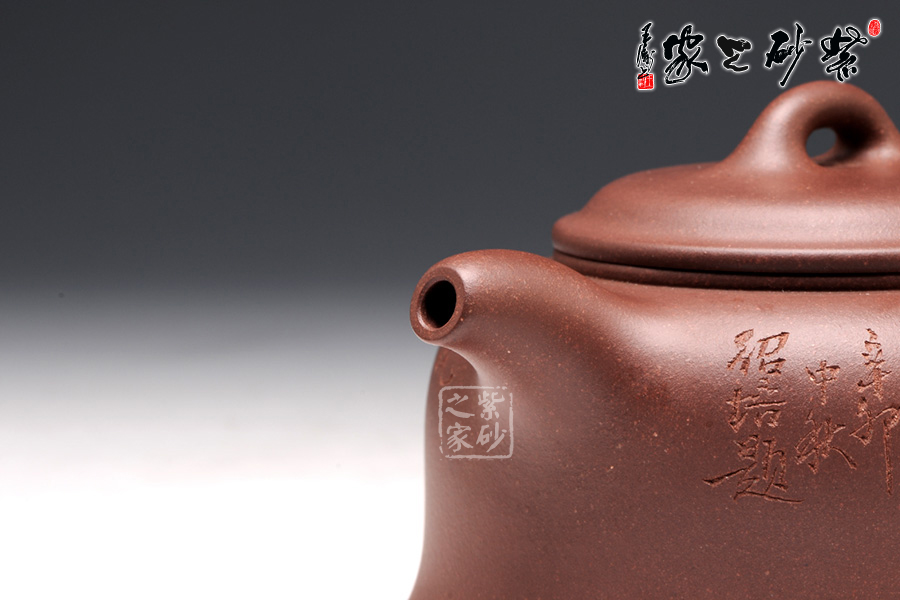 這款作品壺身的造型呈近似的鐘形,但壺身的曲線過渡不是很明顯,整個(gè)壺顯得更為簡(jiǎn)潔有力,壓蓋式十分嚴(yán)密,氣密性相當(dāng)好;壺嘴暗接從壺身胥出,銜接順暢無(wú)起伏。賞玩此壺,便覺各種線條的組合巧妙自然,讓人感覺趣味無(wú)窮。