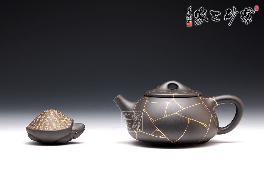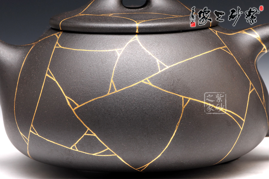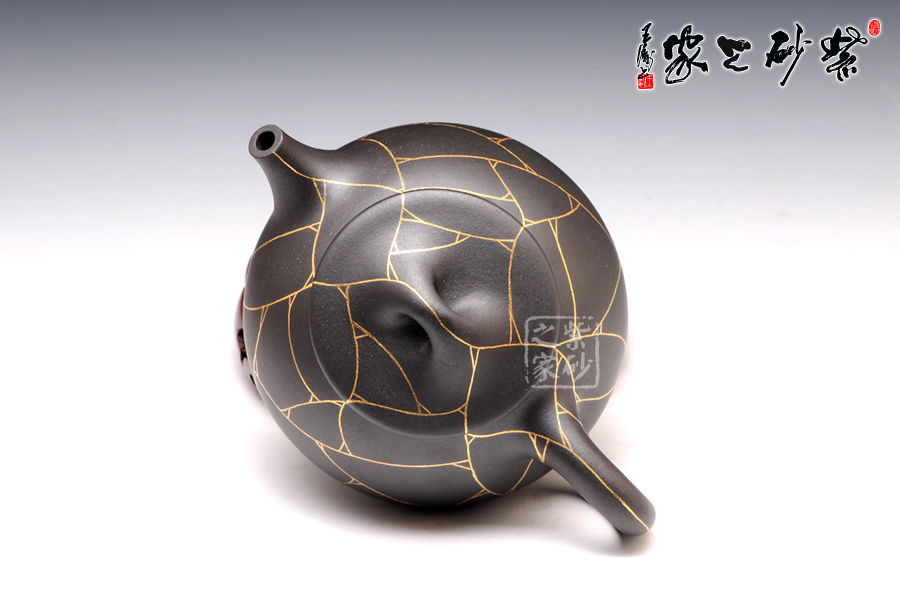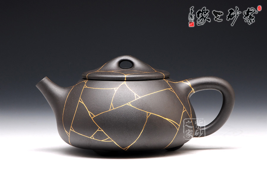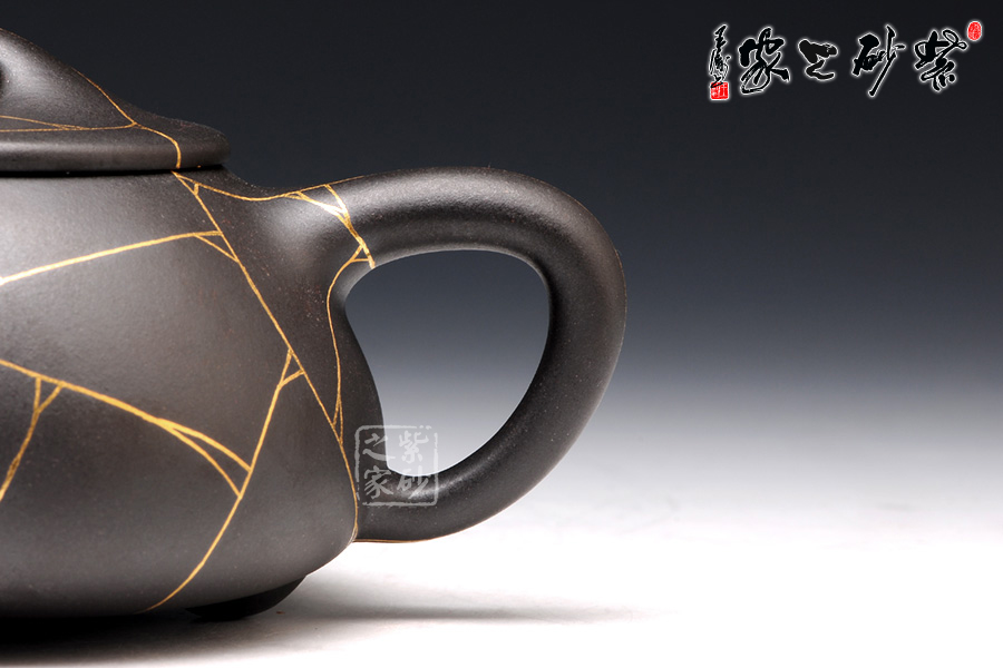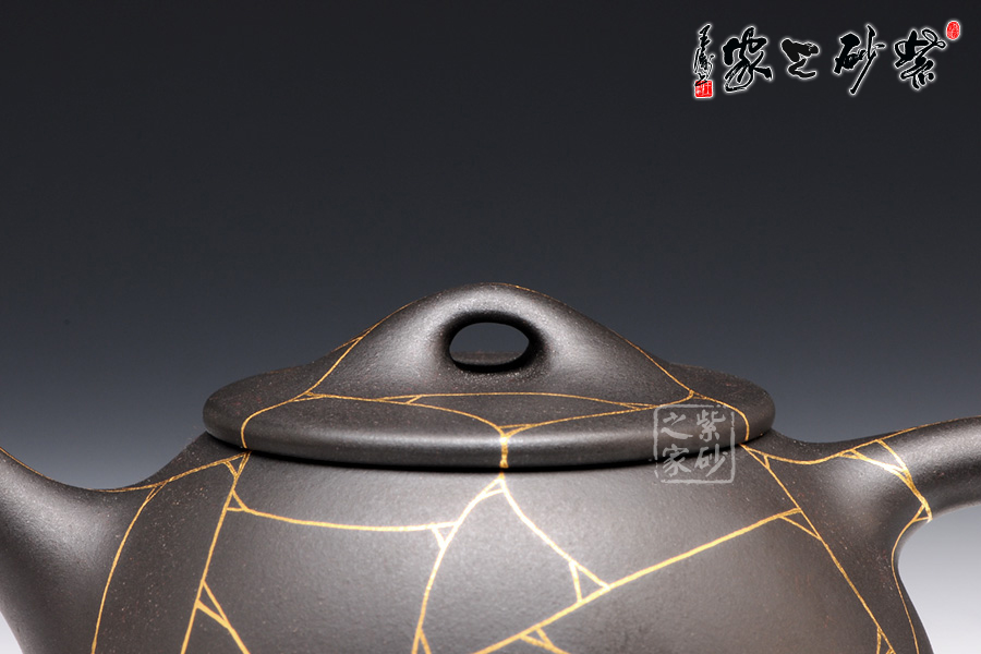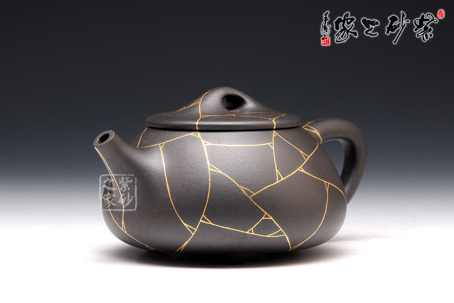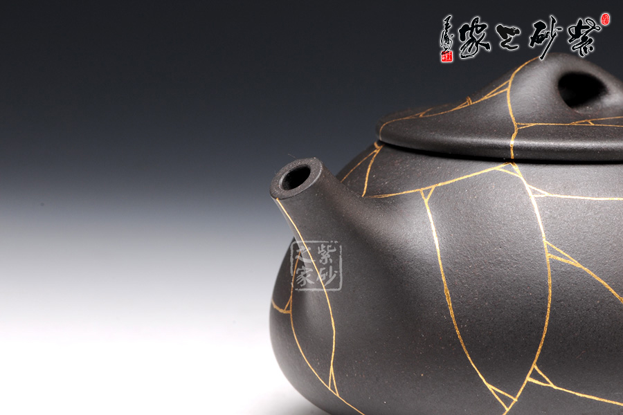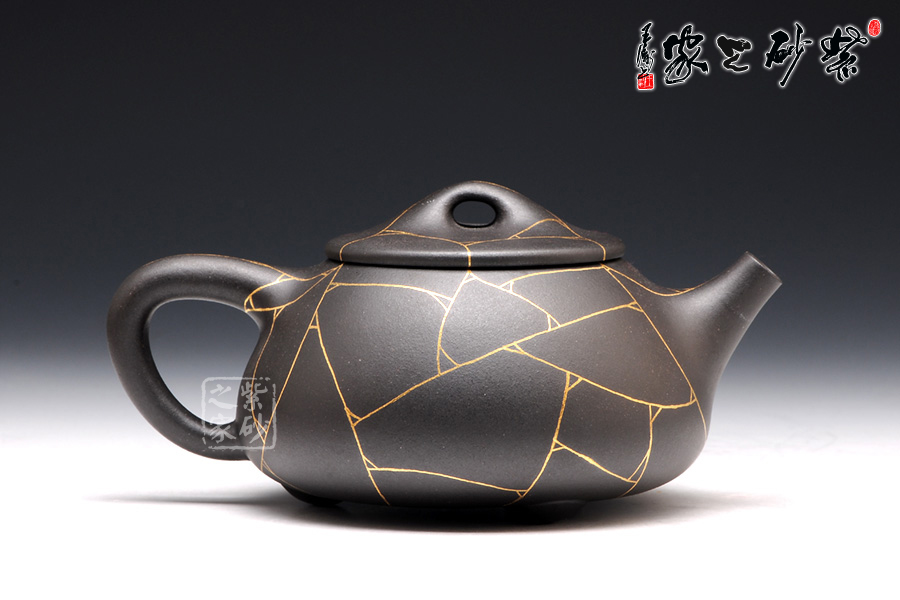 黑泥,其色如墨,似黑夜浩瀚天際,深不可測,配以點點金砂,直如天星閃爍,高掛暗夜長空;神秘靜寂、引人神往,故歷來深受世人鐘愛。作為一款傳統(tǒng)且經(jīng)典的紫砂器型,丁小明老師此款黑泥石瓢與以往的石瓢有著不同的風(fēng)格,老師在泥料選擇與搭配上顯得特別講究,黑泥的沉穩(wěn)與另一種明朗活潑的泥料相應(yīng)和,顯得整款壺氣韻高雅,與眾不同。