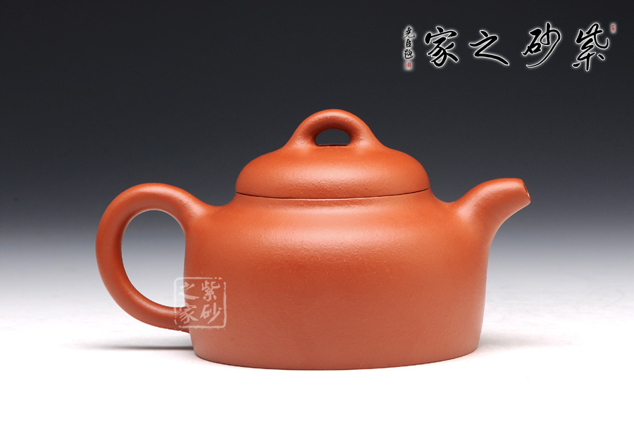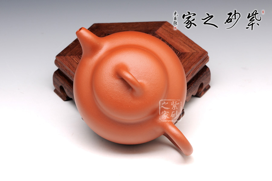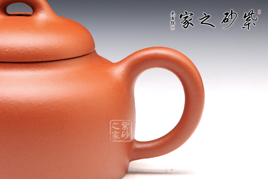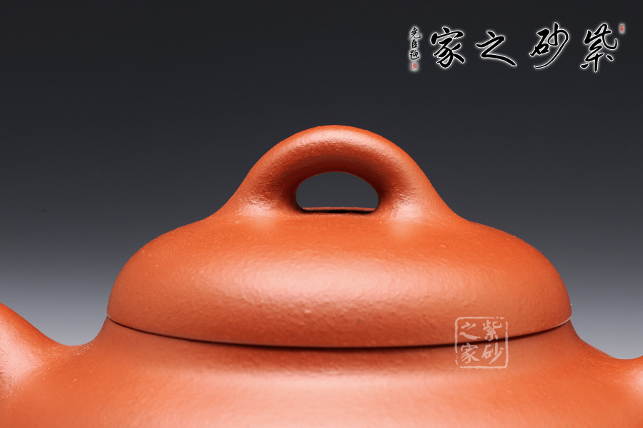 蓮子壺是傳統(tǒng)的壺式之一,這款蓮子精選朱泥制成,質(zhì)感柔而潤,細而不膩,淡泊寧靜;此壺如傳統(tǒng)形制一般,造型古樸,腹圓而鼓,壓蓋蓋面蓬勃飽滿,氣密性良好;暗接耳形把彎曲有致,弧度大小合適;一彎流嘴口略微下壓,出水暢快;壺身結(jié)構(gòu)自然和諧,十分優(yōu)美,平靜中孕育著動感,橋型鈕不落俗套,更顯情調(diào)。