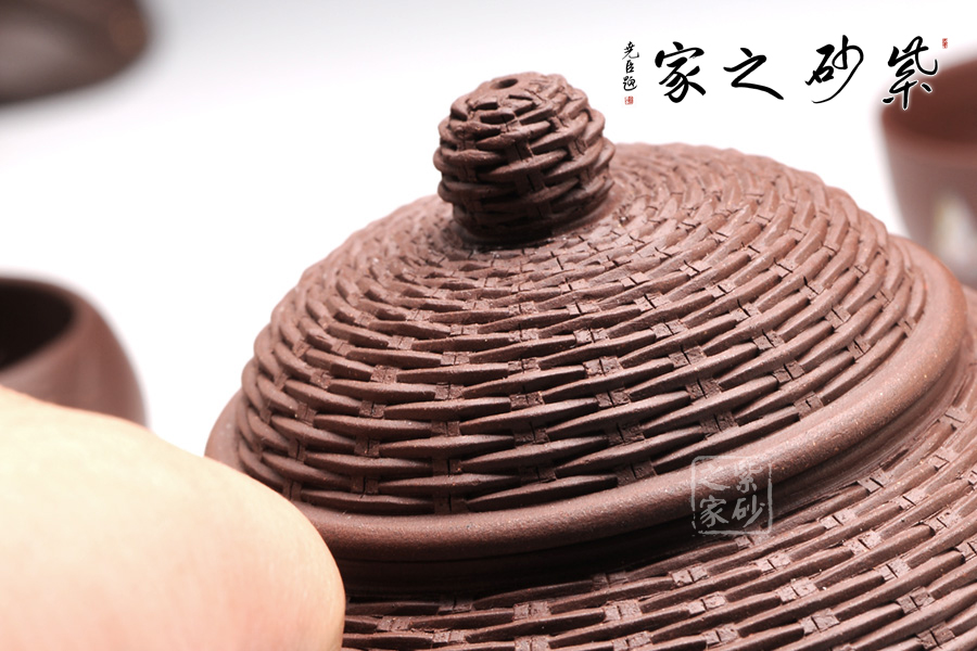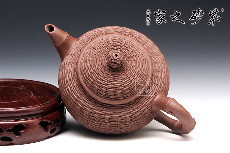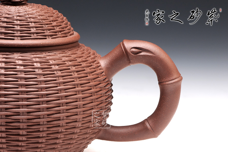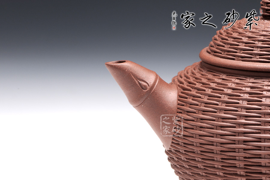 此把水平壺,采用原礦底槽清制作,經(jīng)典泥料,醇厚古樸。水平壺向來考驗(yàn)技藝,竹編水平壺尤其難得。此壺做工嚴(yán)謹(jǐn),沒有瑕疵。壺身和壺蓋緊密連接,嚴(yán)絲合縫。壺嘴尖直,壺把圓潤平滑。整把壺?zé)o一處不光滑,無一處不平整。通身是竹,又工整非凡,極為考驗(yàn)?zāi)托暮鸵懔?,讓人不由得贊嘆。