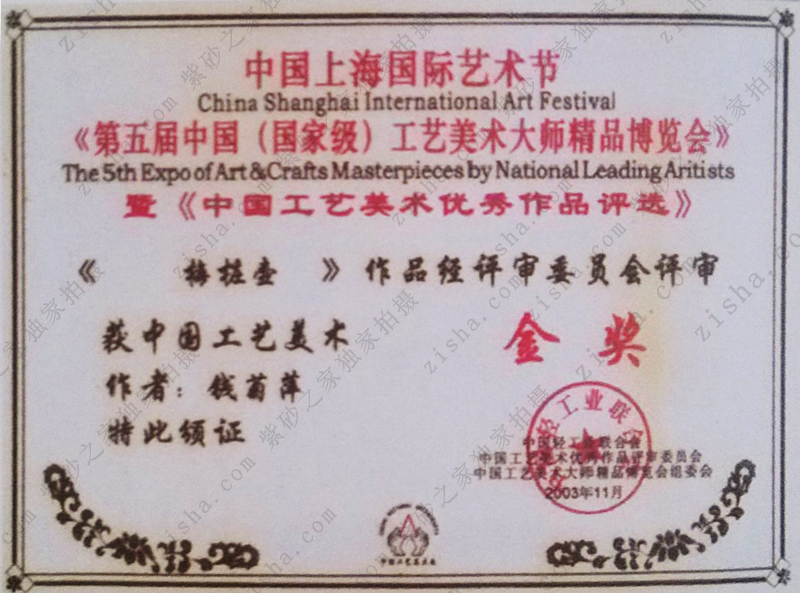 ▼ 2003年榮獲中國上海國際藝術節(jié)中國工藝美術優(yōu)秀作品評選中國工藝美術金獎