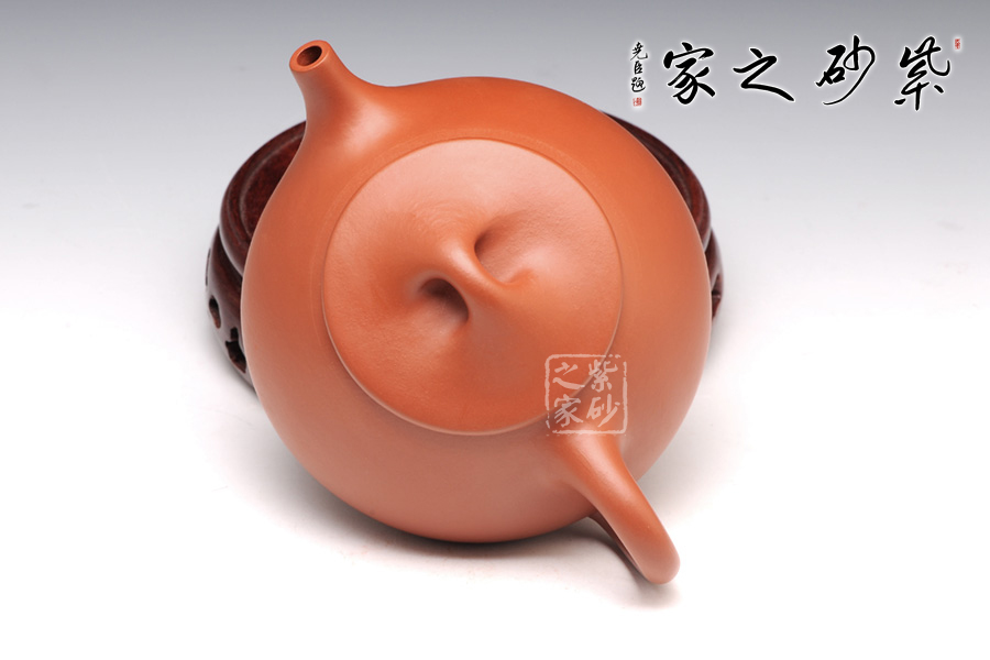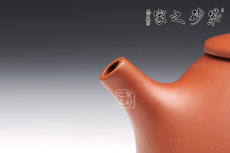 橋鈕外圓內扁,口蓋處理得很細致,吻合處精確到位,壺流稍短,出水更為爽利,壺柄上渾下精,恰到好處。原礦朱泥制壺,色澤醇和優(yōu)雅,渾厚又自然生動,從來都是玩壺者的最愛。泡養(yǎng)很容易,想必泡養(yǎng)之后也很出彩,富有老味。