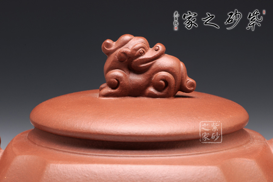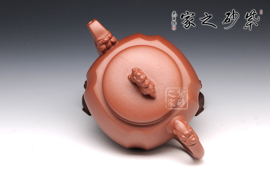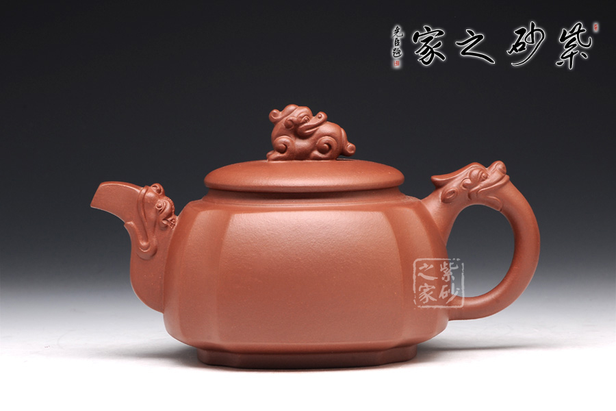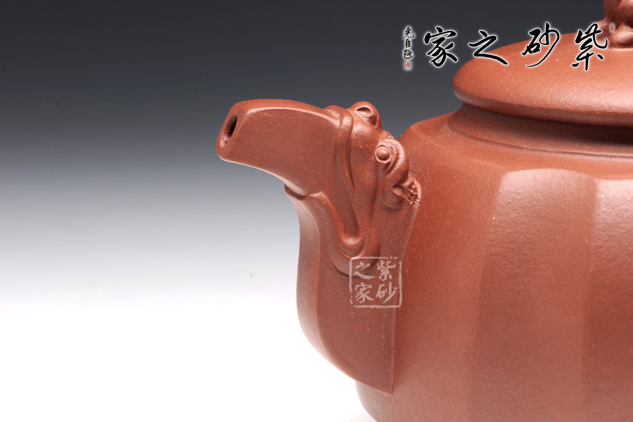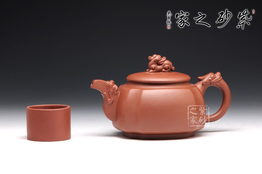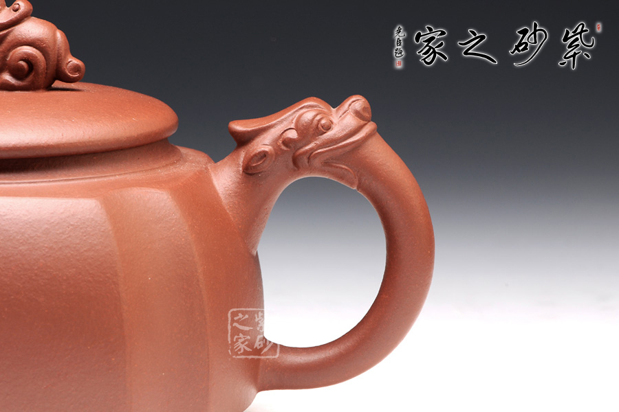 精選原礦底槽清泥料制成的此壺,泥質(zhì)醇厚,色澤古穆。該壺名為高瞻遠(yuǎn)矚,可謂是寄寓深刻。壺身高挺,壺嘴和壺把處皆有一龍頭,呈吐納一切的姿勢(shì),氣勢(shì)磅礴。壺鈕為龍頭做回望狀,形象逼真,高高在上的姿勢(shì),恢宏大氣,和此壺所表達(dá)主題完美呼應(yīng)。