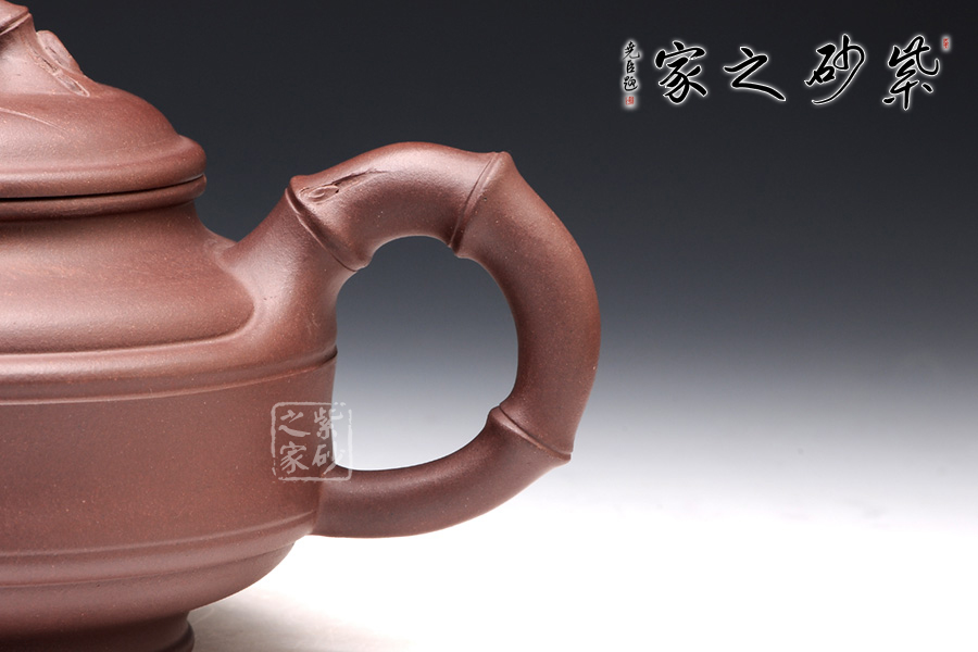 此壺采用原礦紫泥制成,以手撫之,細(xì)膩、柔潤(rùn)之中略有砂感,不加任何化工染料,色澤純正、柔和,手感舒適,只可意會(huì)不可言傳。 新品上架!小巧穩(wěn)重,非常細(xì)致的做工,經(jīng)過泡養(yǎng)后色澤光潤(rùn),質(zhì)感非常好,可謂是不可多得。 壺身運(yùn)用兩條弧線將其分為三份,形似竹節(jié),腹部寬且直,上成壺肩,下位壺底。壺底下仍有一個(gè)直徑小于壺身的圓盤托起整個(gè)壺身,為整個(gè)扁圓的壺體增添了些許挺拔和英氣。 壺鈕,蓋,把均用自然中的竹節(jié)彎曲而成,生動(dòng)自然,富有一種清新,飄逸的感覺。 整體造型簡(jiǎn)練,古樸大方,端莊穩(wěn)重,剛中有勁,敦實(shí)調(diào)和。