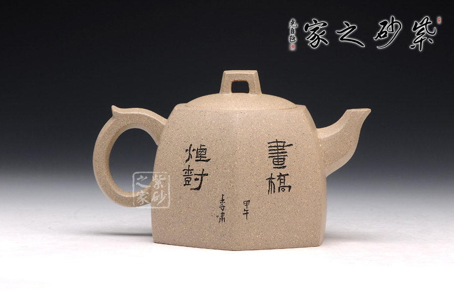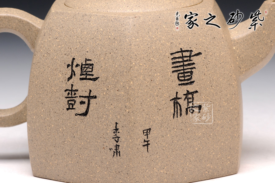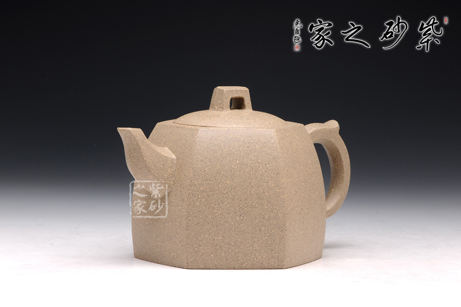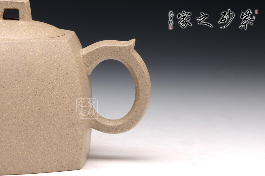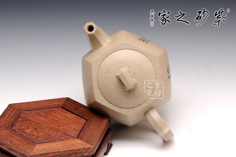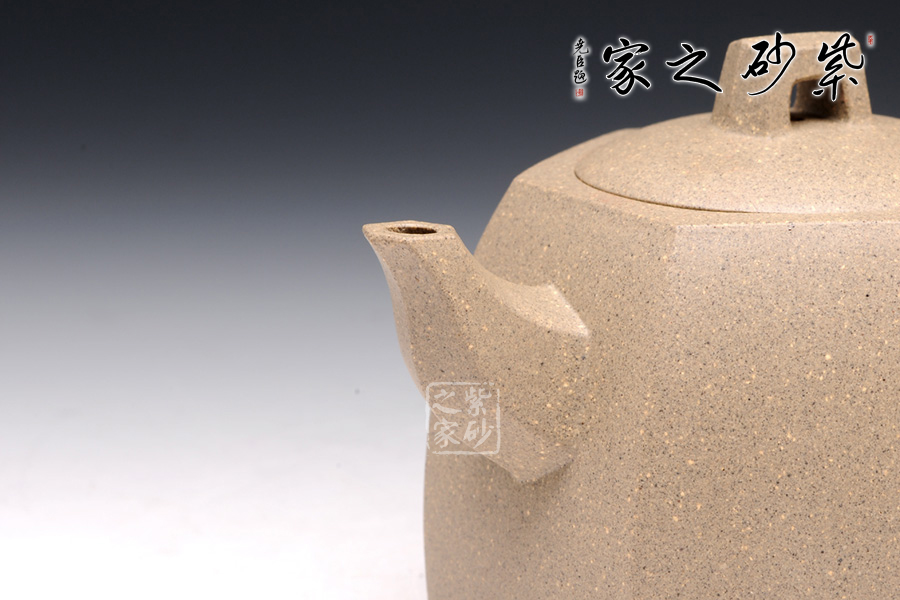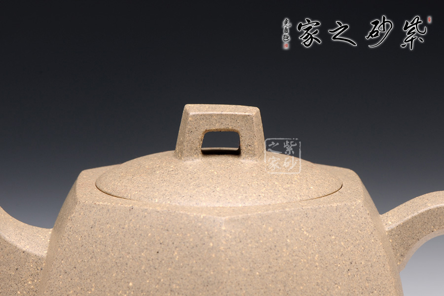 此款六方井欄于傳統(tǒng)器型之上加以改良制作,有方器的挺括剛勁,又不失柔和之美。壺身被六線條分成六面,直線線條轉(zhuǎn)折處理細(xì)膩,鈕、流、把皆以方器展現(xiàn),與壺身相呼應(yīng),整體協(xié)調(diào)有致,真正做到了線條流暢,輪廓分明,平穩(wěn)莊重的境界,壺蓋有別于整體以圓形展示,不但不顯得突兀,反而于方中見(jiàn)圓更顯柔美。