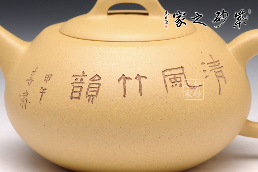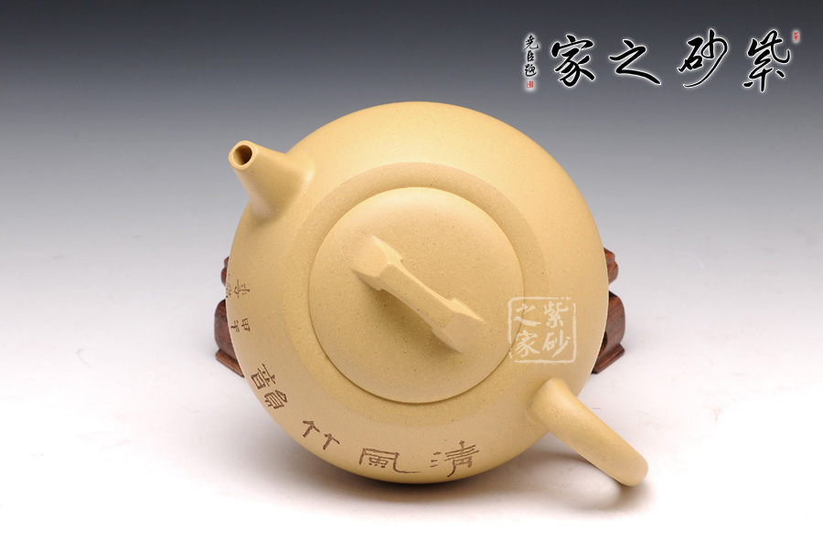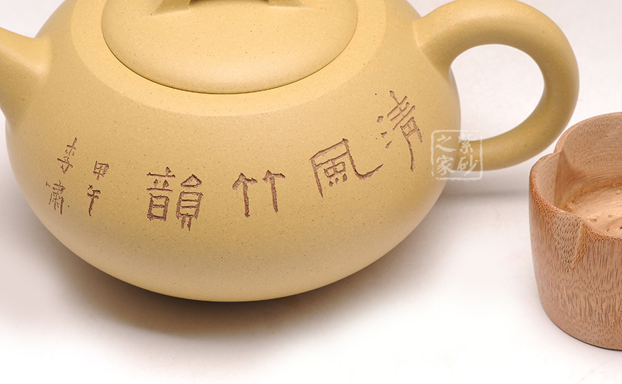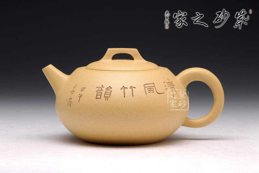 泥性:感甜嫩綿密,質(zhì)堅(jiān)而溫潤,呈近田黃色調(diào),為江蘇宜興趙莊山系朱泥礦~黃石黃之共生礦,經(jīng)挑揀練製而成,因含鐵量只達(dá)6%左右,致陶之后呈“金田黃色”。