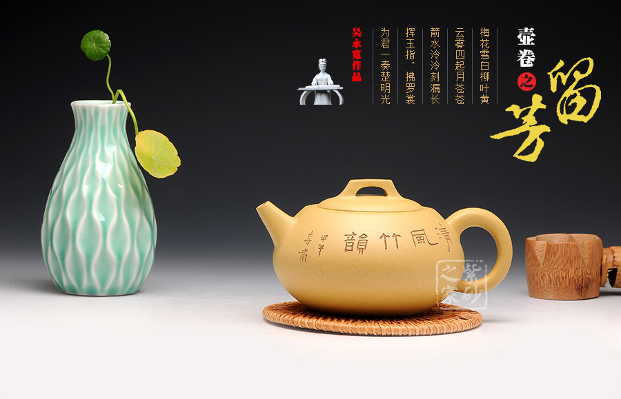 1972年5月生于宜興,高級工藝美術(shù)師,1993年畢業(yè)于徐州供銷學(xué)校廣告裝潢專業(yè)后開始接觸陶刻藝術(shù)并制作紫砂壺。先后得到蔣琰濱、陳宏林的指導(dǎo),長期研習(xí)真、草、隸、篆諸體書法,認(rèn)真揣摩山水、花鳥、人物等傳統(tǒng)畫科在陶刻中的具體表現(xiàn)形式。書法于隸、篆二體用功最深,作品深沉雄渾,骨力堅(jiān)挺。得益于早年受過的西洋繪畫訓(xùn)練,吳永寬對復(fù)雜造型輕駕就熟,對精細(xì)的畫面有極強(qiáng)的掌控能力。其陶刻掛盤中的許多圖案連長期學(xué)習(xí)素描的美院學(xué)生用鉛筆都未必畫得出,吳永寬卻能刻得精微巧妙、形神兼?zhèn)洹?/p>
