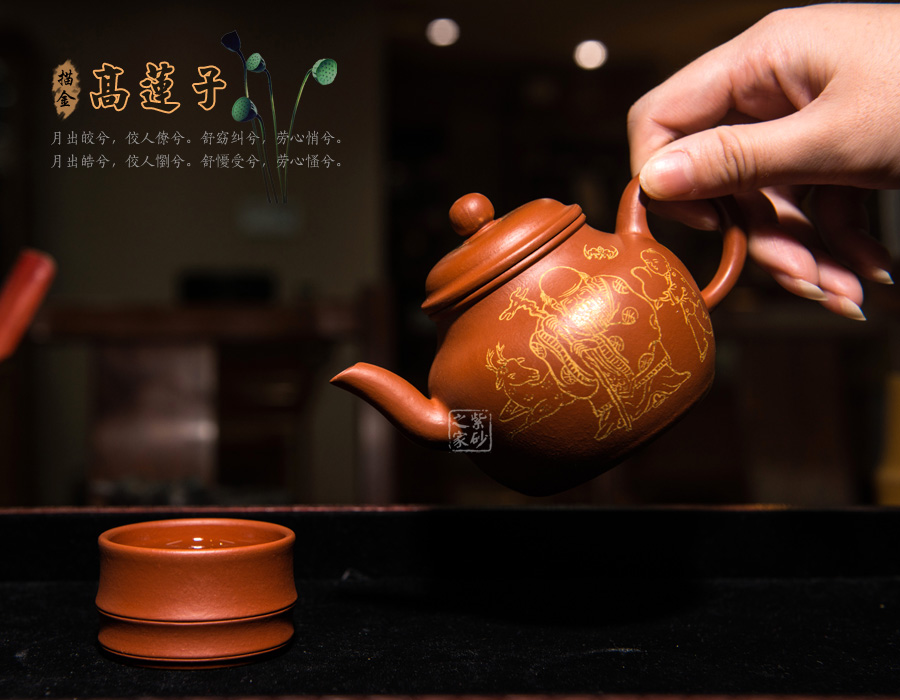 特點:熱水沖淋立展嬌嫩鮮紅特色,壺身游移紫光遽現(xiàn),神秘迷人風(fēng)韻令愛壺人神醉。
