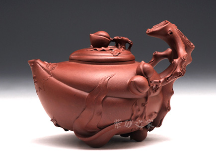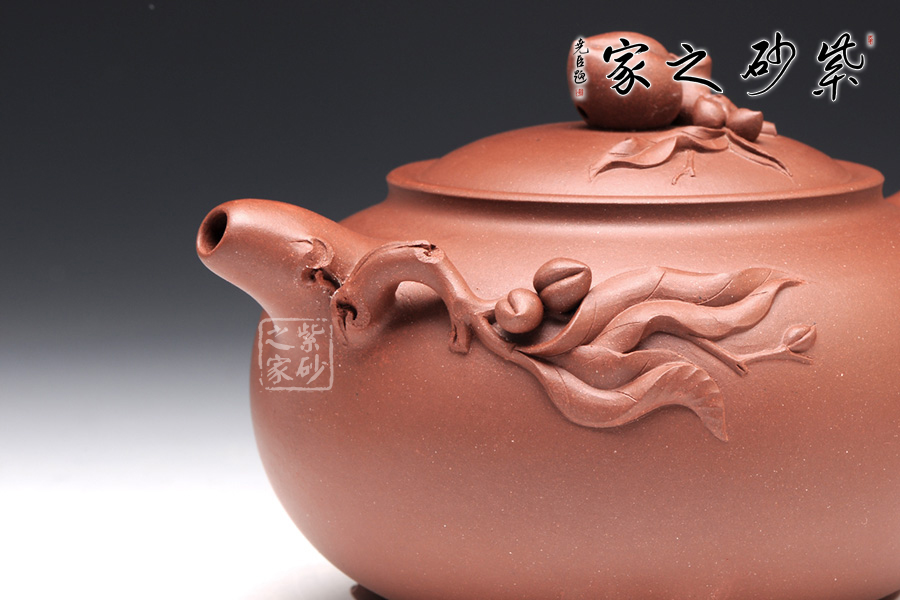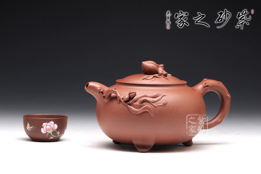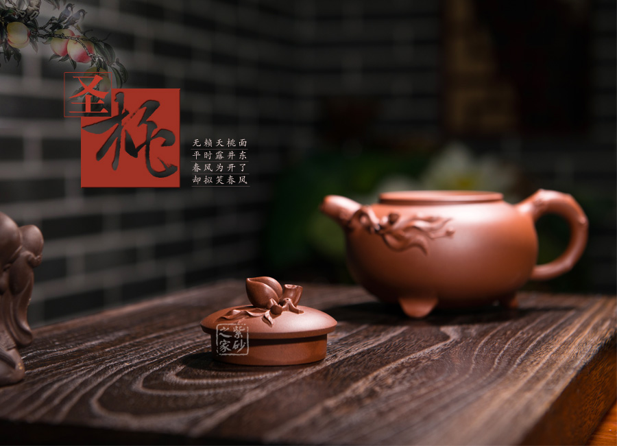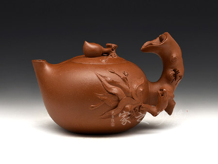 桃子在中國傳統(tǒng)文化中始終被作為福壽吉祥的象征,正是因為如此,千百年來桃一只被畫家、雕刻家當做座上賓,或畫上中堂,或雕上家居墻、具,所以在紫砂壺界也不乏桃的身影了。