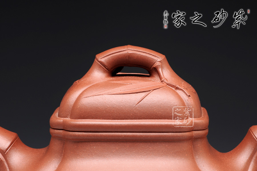 此款竹鼎壺做工嚴(yán)謹(jǐn),達(dá)到了無(wú)比精密的程度.。在壺把、壺嘴和壺鈕處作者都運(yùn)用到了竹節(jié)裝飾手法,由于做工精細(xì),不僅壺體銜接處恰到好處,而且竹節(jié)挺拔有力,形神逼真;尤其是壺蓋上裝飾的竹葉,刻跡清晰,彷佛青翠欲滴。整個(gè)壺體沒(méi)有雕刻任何繁雜圖案以及字跡,然而卻是一片韻味盎然,生趣動(dòng)人的景象。厚重中蘊(yùn)含著智慧,可謂大巧若拙的典范。