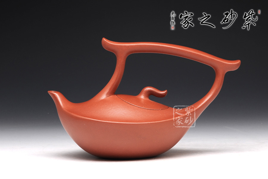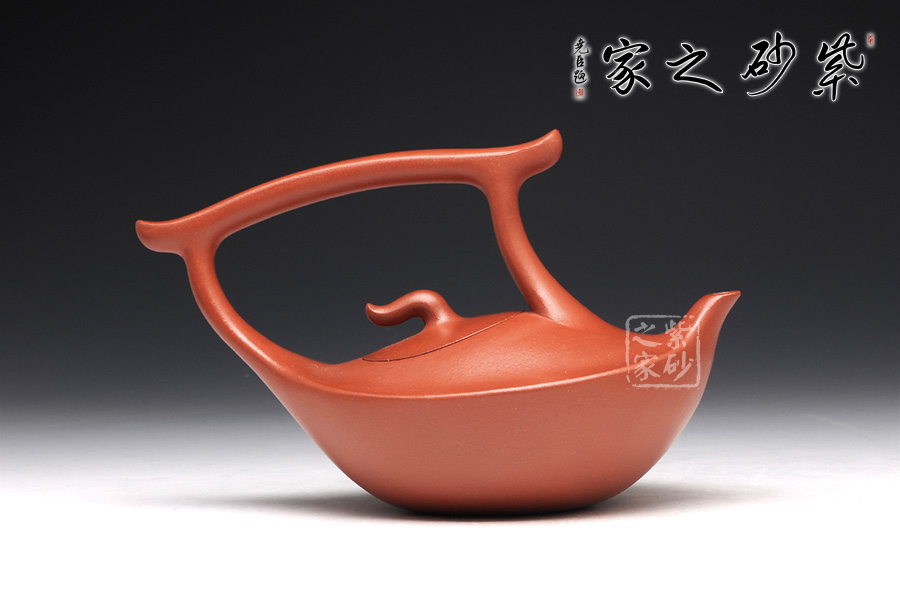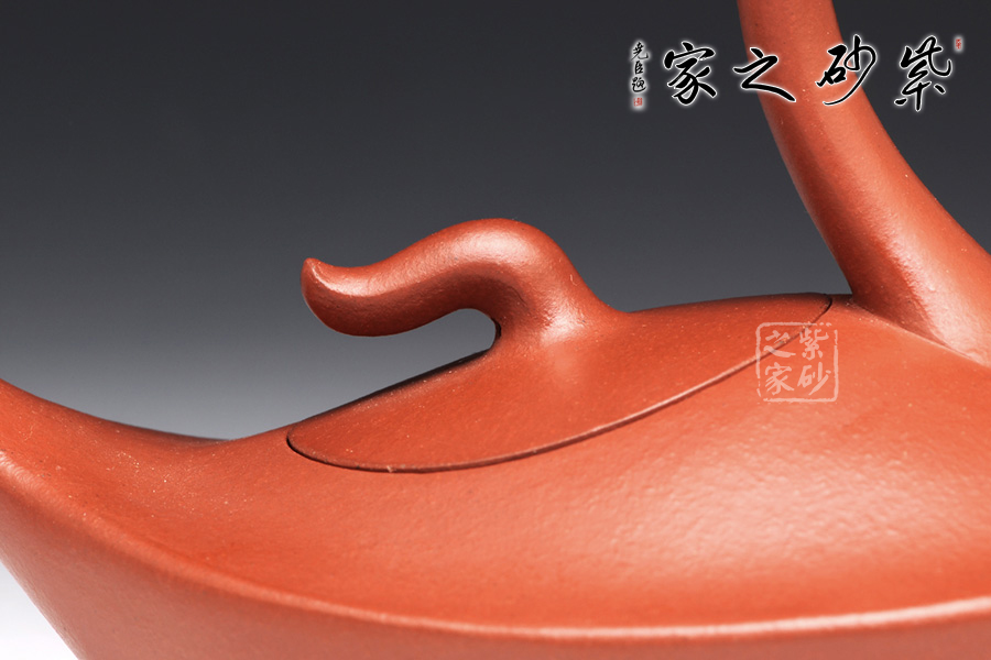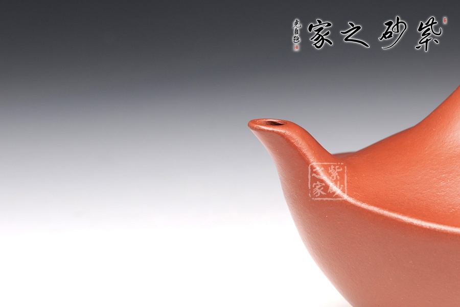 此壺由原礦朱泥制作而成,造型新穎別致,與以往的傳統(tǒng)器型不同,讓人第一眼就有一種乘風(fēng)破浪,欲前行之感。