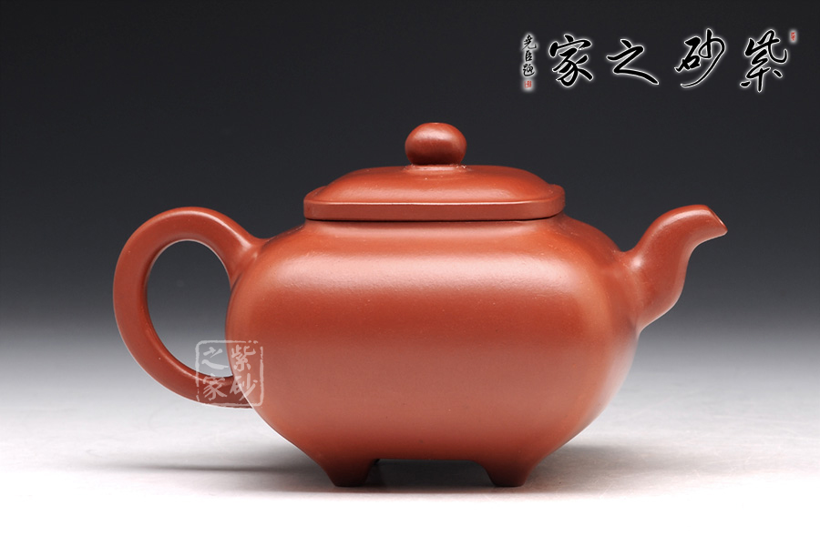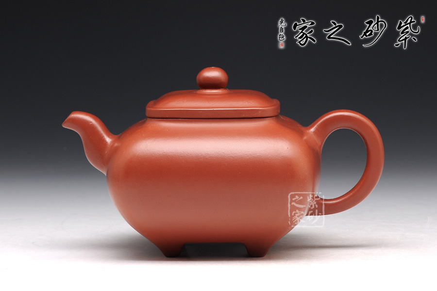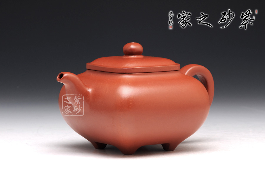 傳爐是紫砂壺的一個經(jīng)典器形,其制造型取材于青銅器,富有更多的神秘和細膩。器身形狀以方器為基本形,但方中寓圓,比一般方器多了一份圓潤之美。壺嘴的造型難度亦高,方中帶圓, 圓里寓方,三彎流式曲折有致,出水流暢。壺蓋延續(xù)了全器造型特微,方型圓角,壓蓋形式,制作精良的壺蓋要能四面通轉(zhuǎn)無礙,且面面俱到,能接續(xù)全壺氣韻。底足皆采用四顆“釘足”形式,且多屬短柱型,精巧別致,落地穩(wěn)重。