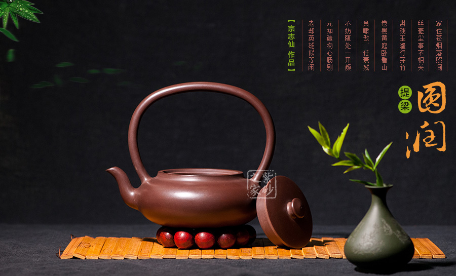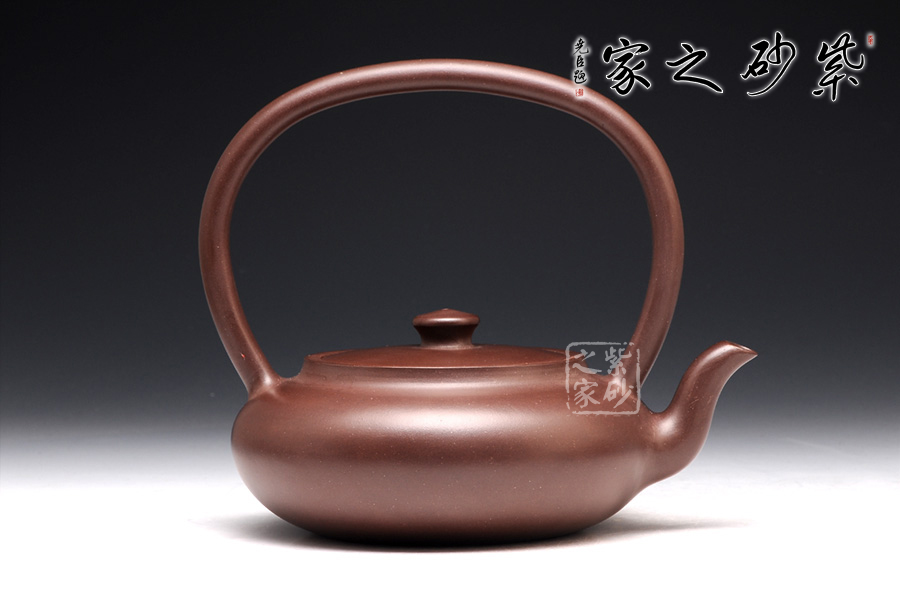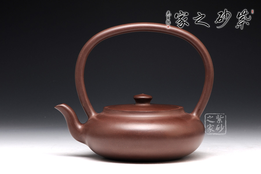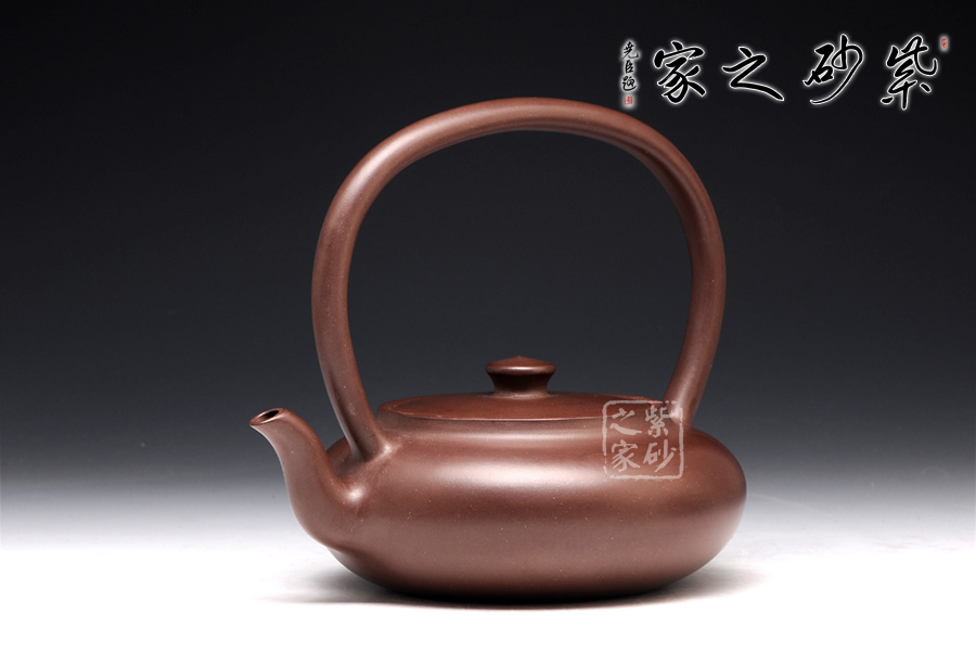 此壺造型極致簡(jiǎn)約,壺身又極致飽滿圓潤(rùn),壺身造型呈橢圓形,如一塊精美的玉璧,捧在手心,觸手生溫;嵌蓋設(shè)計(jì),恰似無縫相接,氣密性極佳;壺嘴三流彎蜿蜒向上,暗接渾厚精湛,出水勁道有力;一彎?rùn)E圓形的大提梁橫貫半空,氣勢(shì)雄渾。使飲者在品茗之余,又能品味到紫砂獨(dú)特的工藝之美。