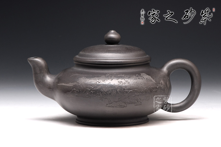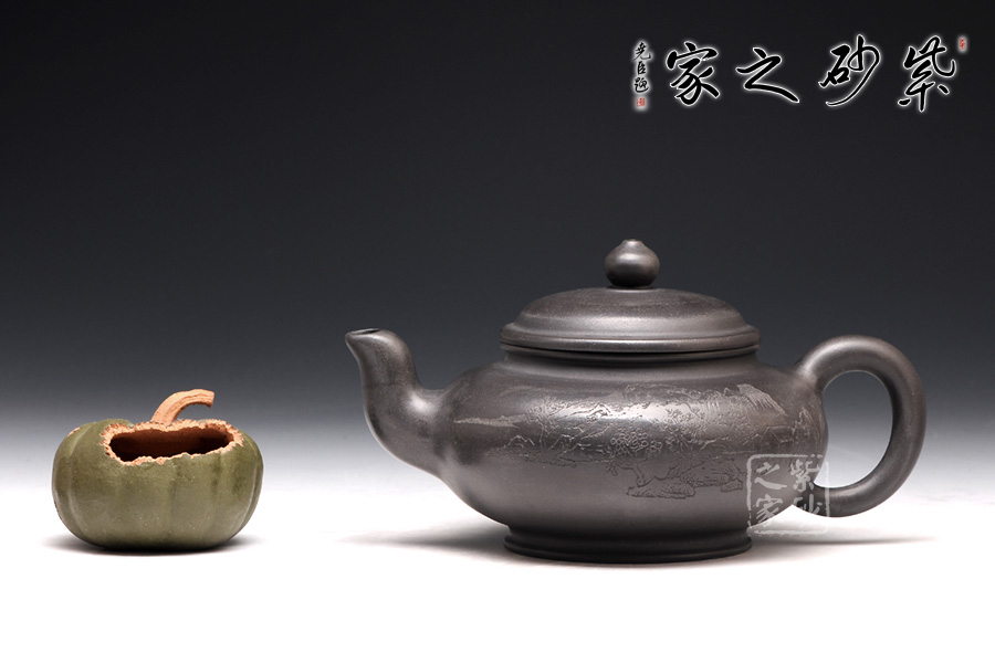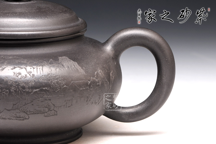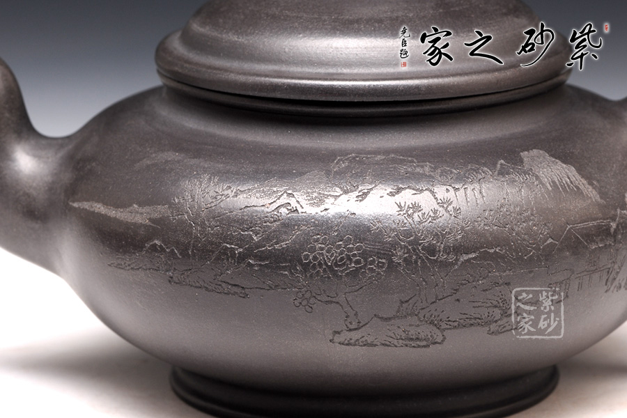 A面: 裝飾: 山水 裝飾者:陶刻藝人 裝飾內(nèi)容: 怡然之景,山野之趣讓人品茶靜心之間,浮想聯(lián)翩。