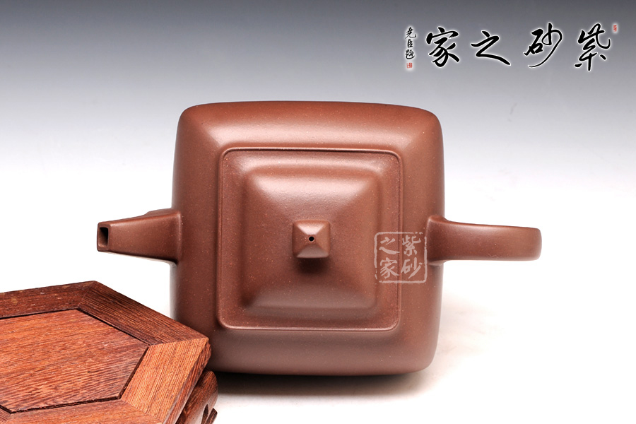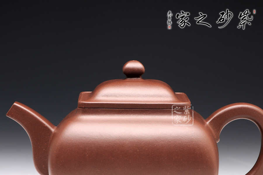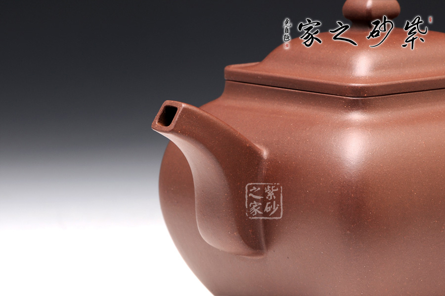 此四方壺精選原礦紫泥制作,在造型方面彎曲的弧度與挺括的直線完美的結(jié)合在一起,相互承載,達(dá)到方中有圓,圓中有方的感覺。在壺把與壺嘴的設(shè)計(jì)中不難看出。壺蓋好似寶鼎,壓蓋與壺口融合為一體,氣密性良好。整體彰顯了此壺獨(dú)到的氣質(zhì)和神韻。