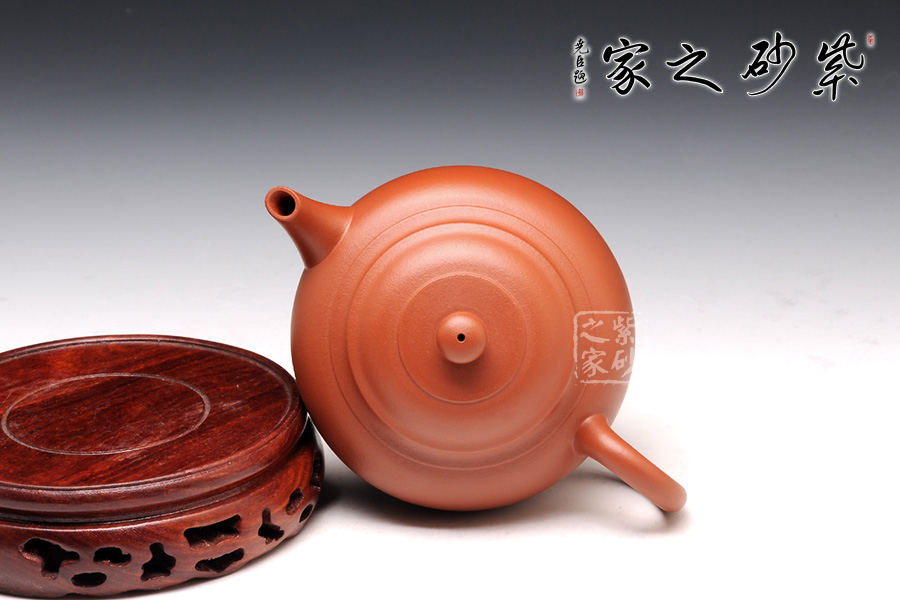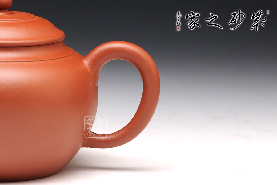 原礦朱泥泥料,色澤美艷華貴,絕對(duì)是玩壺者的摯愛。圓融的壺身線條柔美平滑,輪廓飽滿盈潤(rùn),似水珠,似美玉。頸部平增光滑,壓蓋簡(jiǎn)練自然,其上圓潤(rùn)精致,邊沿和頸部線條呈疊加姿態(tài)。壺鈕精致美妙,圓珠與壺身大小相對(duì)應(yīng)。彎流嘴簡(jiǎn)潔生動(dòng),耳形壺把自然順暢。賞玩此壺,才知韻味無(wú)窮。
