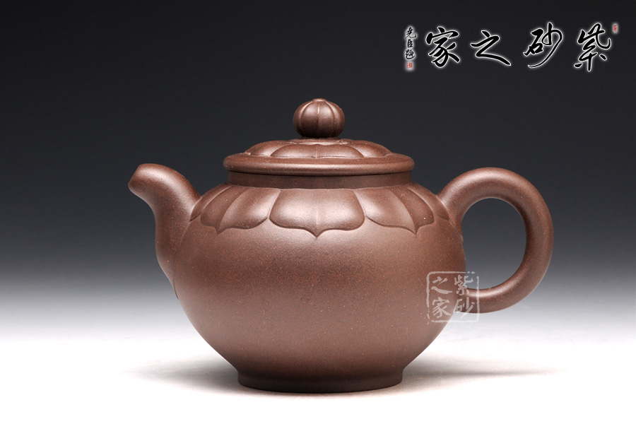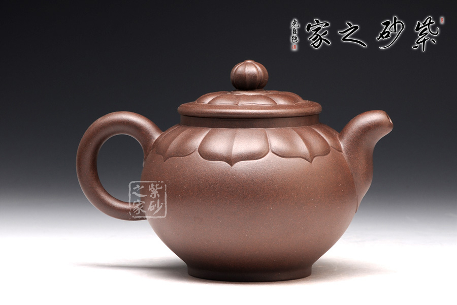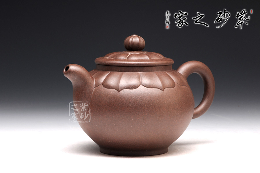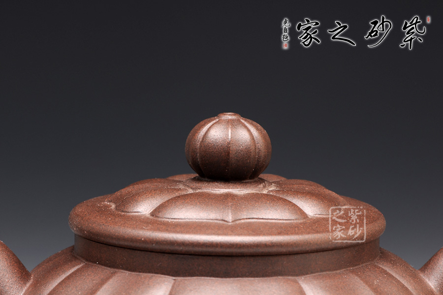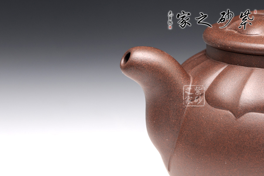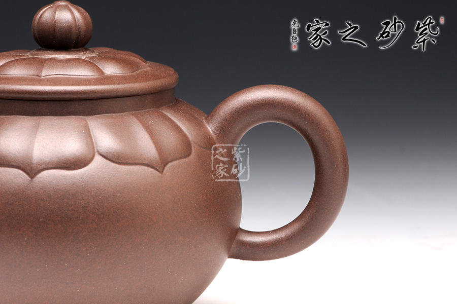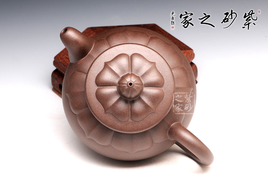 壺型是在圓器的基礎(chǔ)上,加入蓮花的模樣。與其他壺不同的是,蓮花盛開是在壺蓋上,而不是從底部。花瓣蔓過壺蓋,延伸到壺肩部位,線條清晰,對仗工整,絕對是精心制作。此壺上下呈現(xiàn)出筋紋和圓器兩種風(fēng)格,各具特色,各有千秋,是收藏玩味的上佳之選。