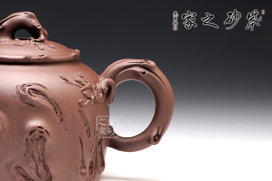 精選原礦紫泥全手工制作而成,色澤紅潤,典雅大氣,透露出一種醇和爾雅,濃厚的文人氣息,此壺以“梅”為主題,作者將梅花的神態(tài)以及神韻刻繪得淋離盡致,整個(gè)壺身就是梅花樁,而壺鈕壺把以及壺嘴皆以梅桿制作而成,壺身點(diǎn)綴梅花花骨朵,整個(gè)壺猶如一個(gè)冷艷美女,令人難以忘懷。