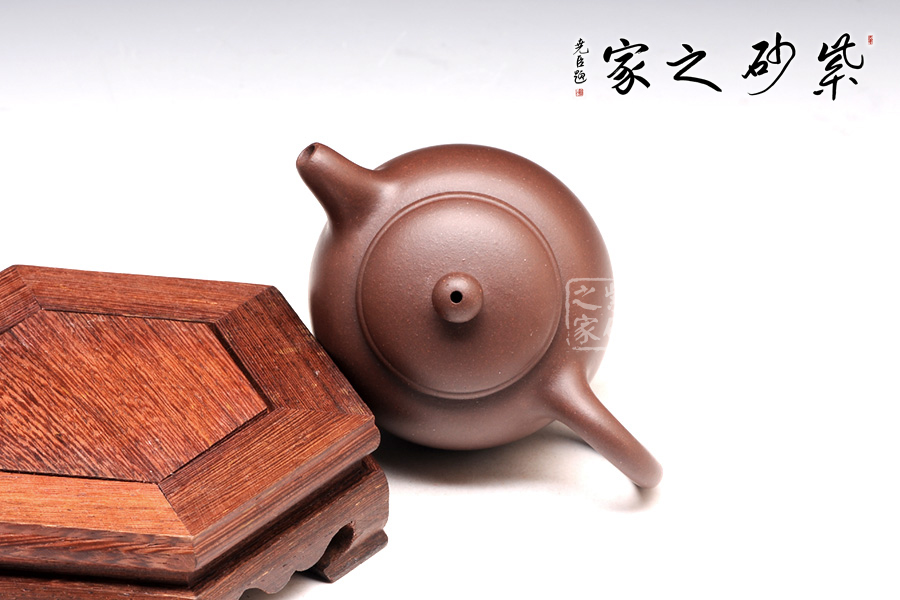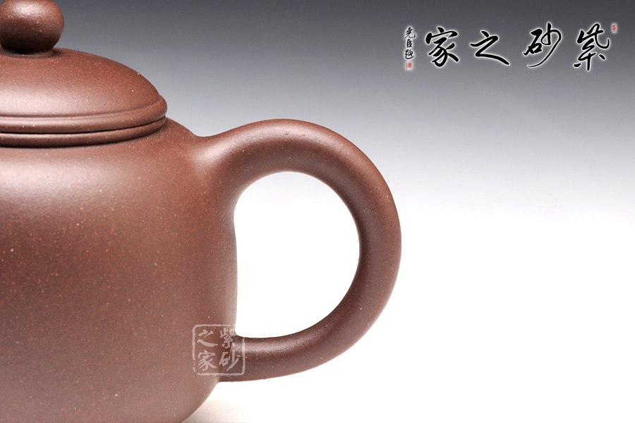此壺款形優(yōu)美,線條流暢,韻味十足;流、鈕、把整體比例協(xié)調(diào),易于泡養(yǎng),手感舒適;壺嘴短流,出水流暢,密封好;該壺壺蓋與壺口各自有線,壺蓋合上后上下又渾圓一體,而無繁復之虞,充分體現(xiàn)了紫砂的妙用;整器線條流暢,壺身挺括飽滿,豐潤敦厚;壺體呈球體,由壺身腹部向下包攏為底;整體顯得和諧統(tǒng)一,孤寂沉靜,且又有成熟后的厚實圓潤之感,線條洗練,小中見大,端莊豐滿。