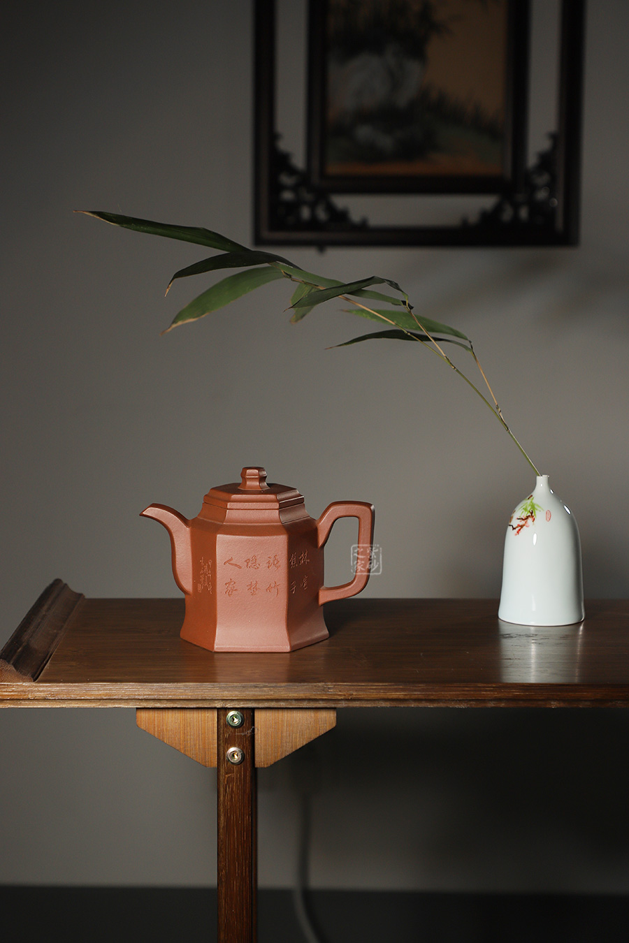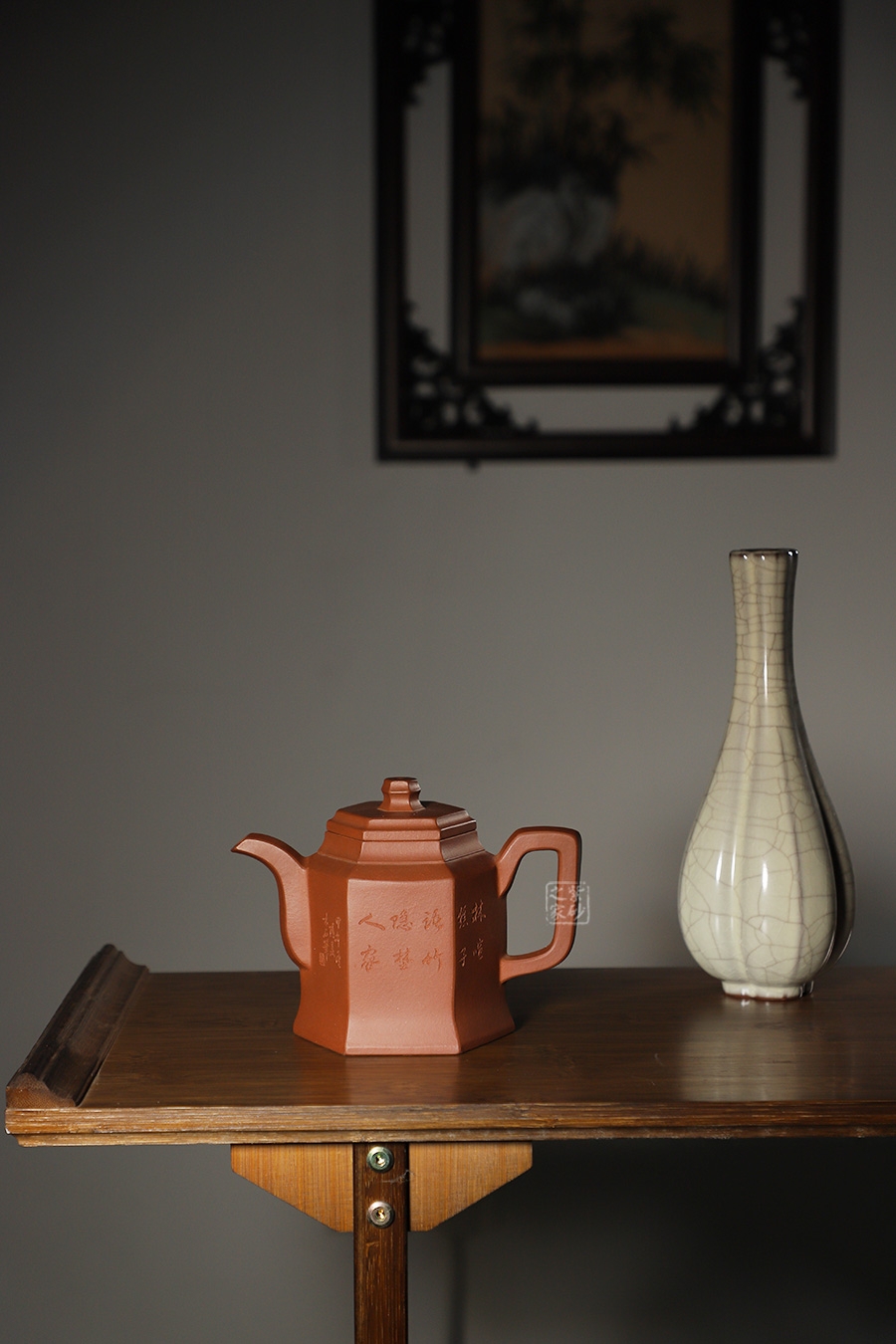 壺身正面篆“林喧樵子語,竹隱野人家”,對應(yīng)背面的山水風(fēng)景,一派隱逸樂趣,讓人無比向往。