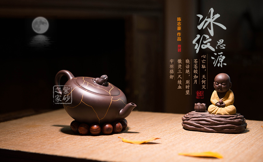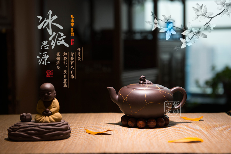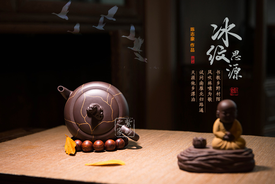 陳志豪:1973年出身于江蘇宜興,高級(jí)工藝美術(shù)師。1992年進(jìn)紫砂五廠培訓(xùn)中心,從師研究員級(jí)高級(jí)工藝美術(shù)大師顧美群,長(zhǎng)期從事造型設(shè)計(jì)與創(chuàng)作,對(duì)光器制作有獨(dú)特見解,形成了自己的風(fēng)格。2002年6月《開片石瓢》榮獲蘇州博覽會(huì)銀獎(jiǎng),同年11月《凌韻壺》獲國(guó)家級(jí)工藝美術(shù)大師展銀獎(jiǎng),2004年9月《招財(cái)進(jìn)寶》獲太湖博覽會(huì)工藝美術(shù)精品展金獎(jiǎng)。作品多次刊登于有關(guān)專業(yè)書籍,在國(guó)內(nèi)各大城市壺展中有較高的評(píng)價(jià),作品被多個(gè)國(guó)家地區(qū)收藏家收藏。2015年10月榮獲首屆“景舟杯”中級(jí)職稱組銅獎(jiǎng)。