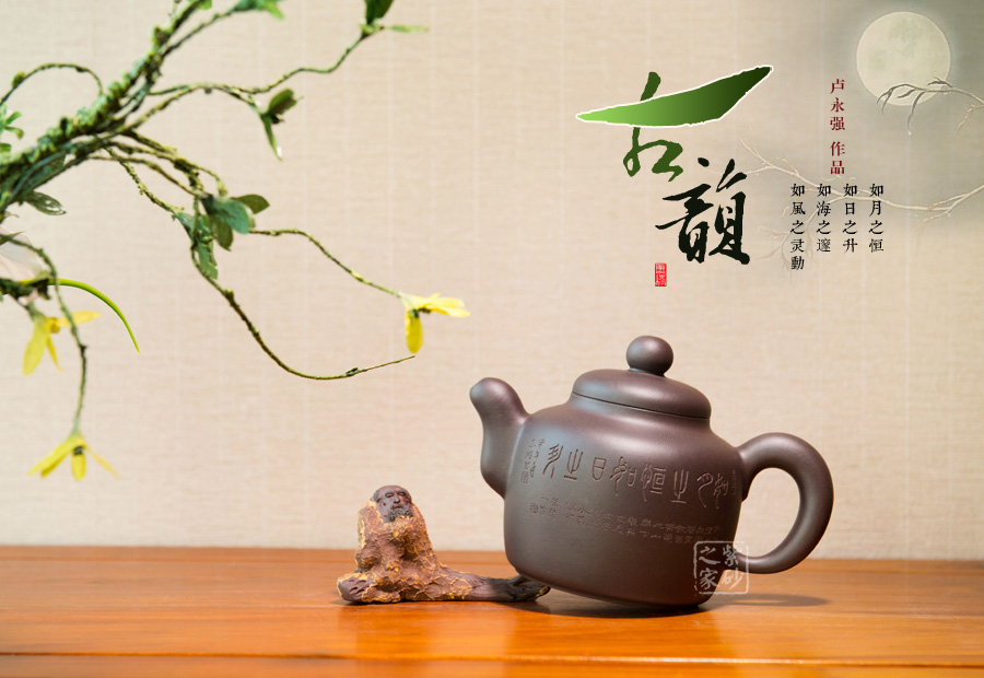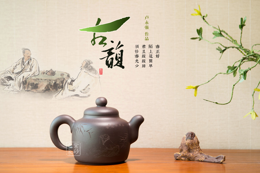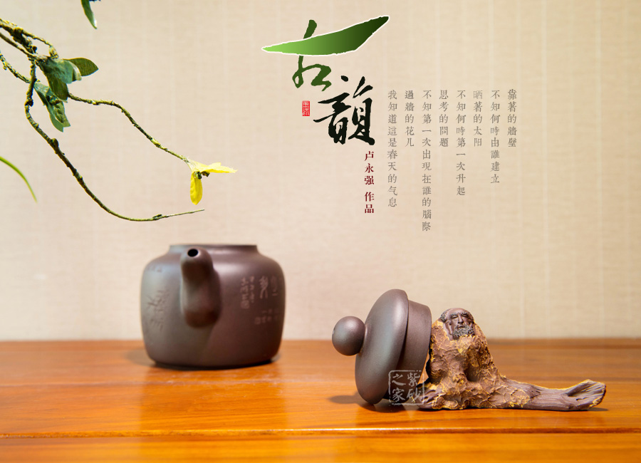 盧永強(qiáng),工藝美術(shù)師,1970年生于江蘇宜興紫砂世家,87年涉藝紫砂,先入中央工藝美術(shù)學(xué)院專修陶瓷造型設(shè)計(jì),后得高級(jí)工藝美術(shù)師張慶臣(陶瓷大師何道洪高徒)親授,悟于時(shí)間,靈妙入化,使作品打下了堅(jiān)實(shí)的傳統(tǒng)功底,得紫砂陶之精妙靈氣,所制作品動(dòng)靜有序,追求整體的和諧永雋。作品做工細(xì)膩、簡(jiǎn)潔大氣,常選用“泥中君子“美譽(yù)的稀有紫茄泥制作,古拙典雅、沉穩(wěn)內(nèi)斂、不失氣勢(shì),值得關(guān)注;其代表作品《紫玉金環(huán)》、《菊仿古》、《三友》等不愧是紫砂精品,全面精湛地展示了其制壺技藝和創(chuàng)作才華,后期潛力無限。