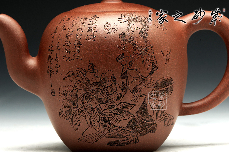 刻繪的貴妃醉酒和“風姿綽約”交相輝映,對應(yīng)此壺的名稱,讓人難忘。
