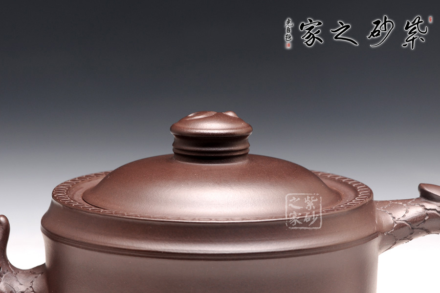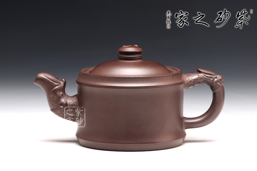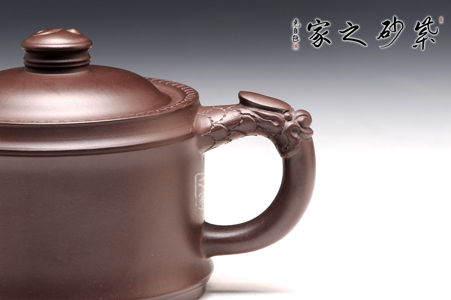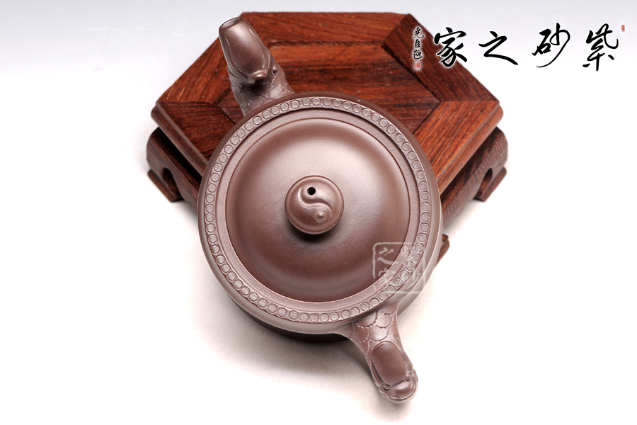 乾坤之象作為鈕,八卦之盤作為蓋,龍嘴直流胥出,爽利有勁,耳形把,飛馳一龍頭,壺身呈鐘鼎之形,大氣古雅,龍騰之勢(shì)在乾坤之間全然而生。此壺將中華民族傳統(tǒng)的龍、道教文化相互結(jié)合,具有意想不到的效果,寓意明朗、和諧,有龍騰盛世之意。此壺細(xì)節(jié)點(diǎn)到之處,令觀壺之人無(wú)不感慨作者手法之精妙,并以吉祥的寓意為多少愛壺之人久久無(wú)法平息其惜壺之心。