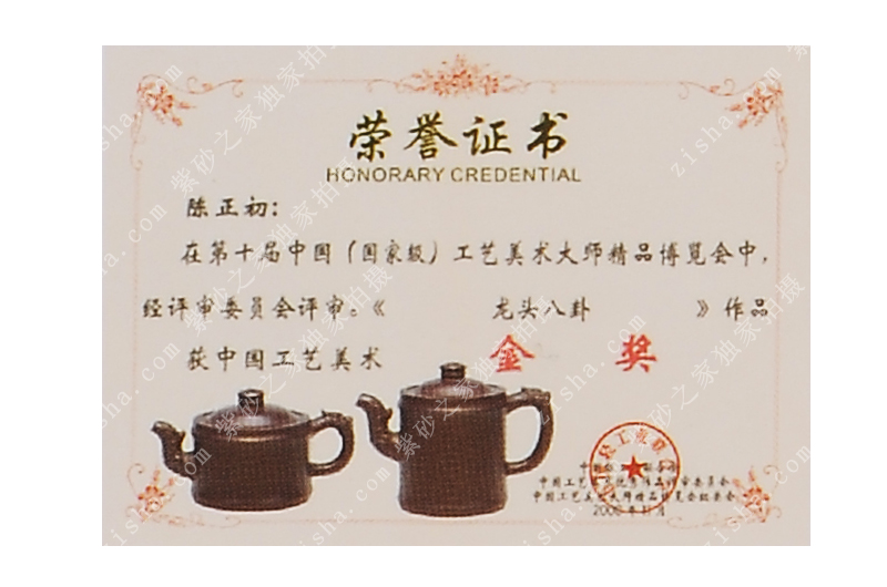 2007年4月《華藝壺》在中國(guó)收藏家喜愛的藝術(shù)大師加精英評(píng)選活動(dòng)中獲金獎(jiǎng)