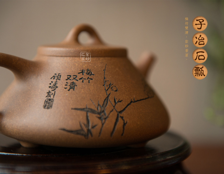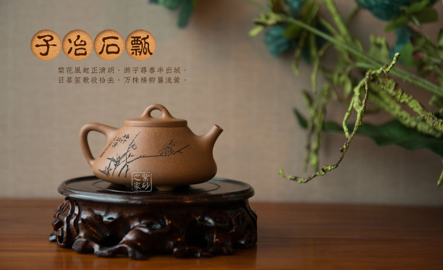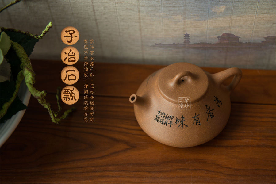 子冶石瓢壺繼承了傳統(tǒng)的精粹,整個壺身呈“金字塔”形,豐潤飽滿,由于重心下垂使用很穩(wěn)當,更具有極大的觀賞性,壺嘴的特色在于短小有力,為直筒形,使出水更加有力量順暢,壺鈕采用常見的拱橋造型,使整款壺在簡單中多了一份活力,壺蓋與壺身嚴絲密縫使此壺具有極高的實用性。