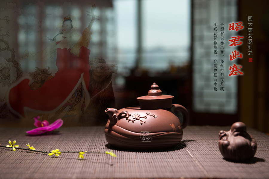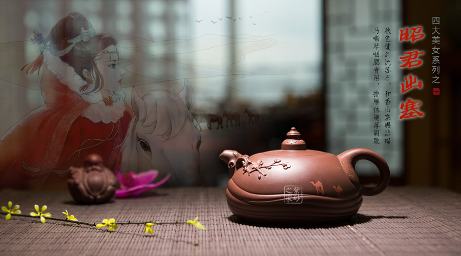此壺用經(jīng)典的昭君出塞來展示紫砂,格調(diào)高,壺藝更顯出神入化。