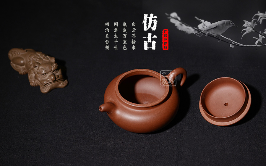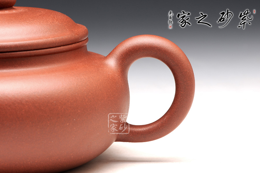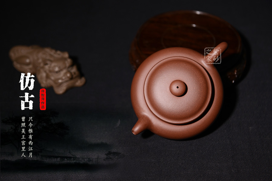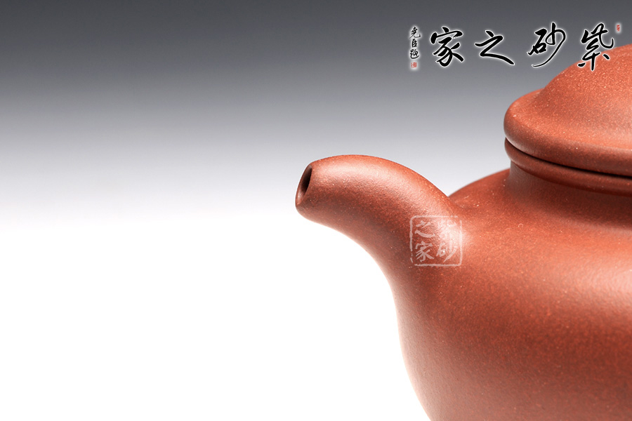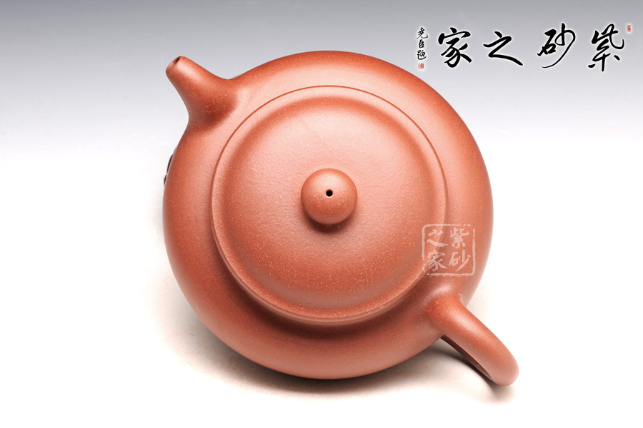 整款壺極度飽滿,壺體扁圓,短頸,坡肩,一變嘴,耳形壺把,秉承傳統(tǒng)仿古壺的古樸質(zhì)拙,氣韻不俗。