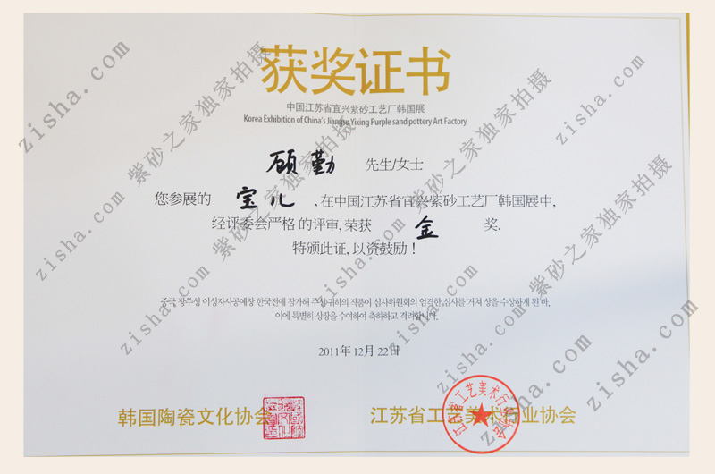 ▼ 2011年宜興紫砂工藝廠韓國展金獎!
