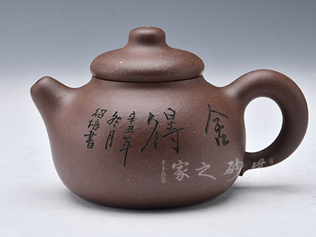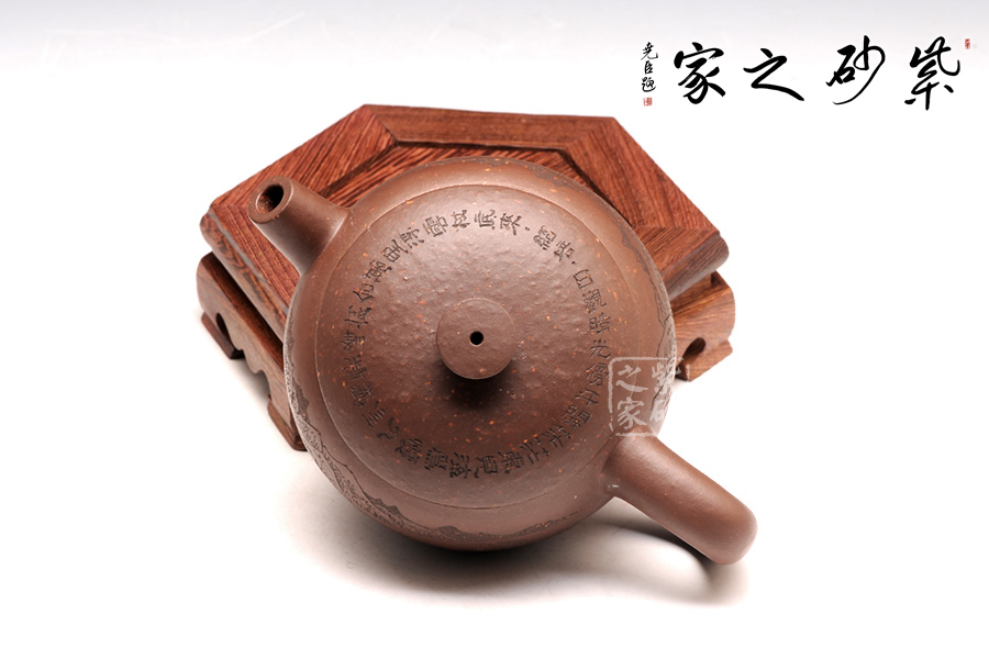 整個壺身呈簡單的缽盂狀,嵌蓋使其更加完整,壺鈕呈倒置的半球形,與壺身相映成趣;壺嘴與壺把也同樣簡潔,壺嘴明接,呈短柱形,渾身圓潤,出水爽利;壺把亦是明接,呈四方輪廓,圓中見方,剛?cè)岵?jì);整款作品以一種質(zhì)樸的氣質(zhì)打動人心,就如自己的心愛之物,喜歡不需要過多的理由。