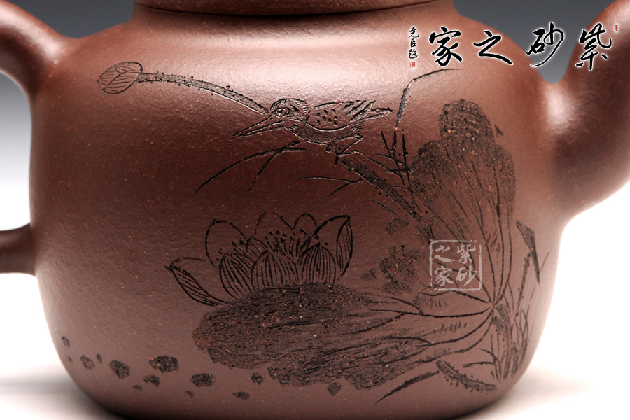 壺身的裝飾別樣精彩,顧紹培大師題詞很具有收藏價值,而荷塘刻繪足以伴茶。